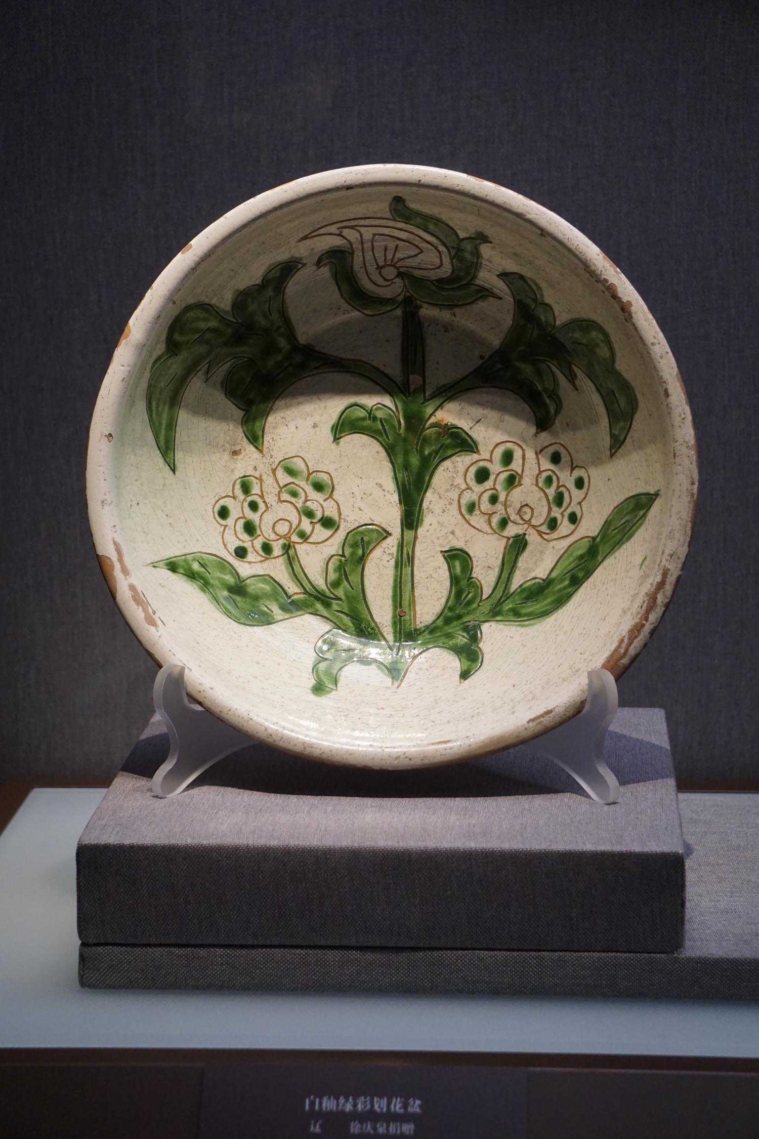 白釉绿彩划花盆辽