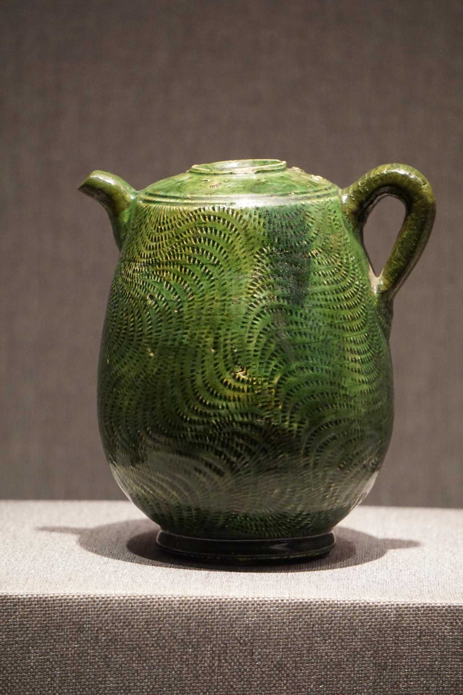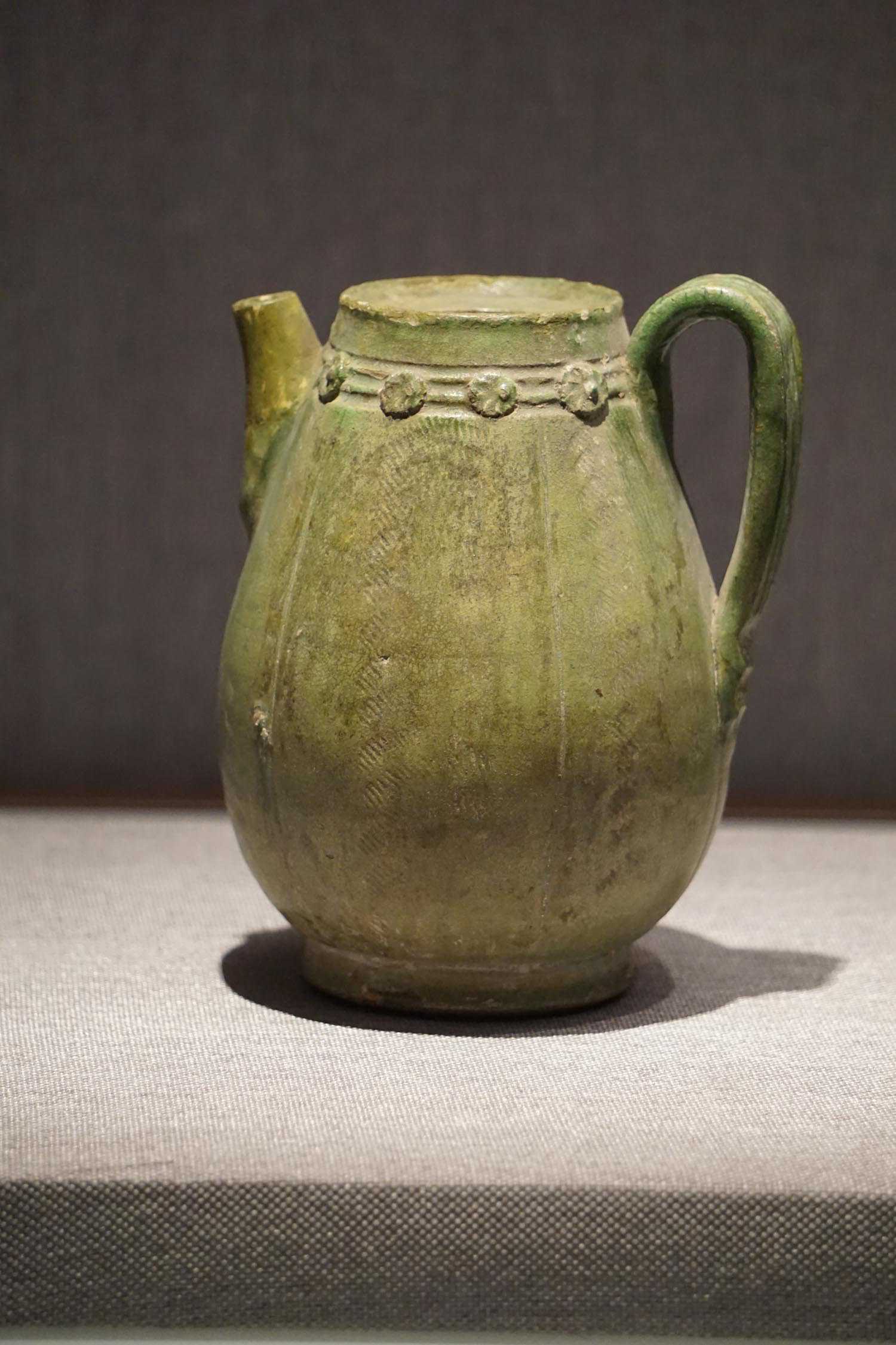 绿釉印篦点纹执壶辽