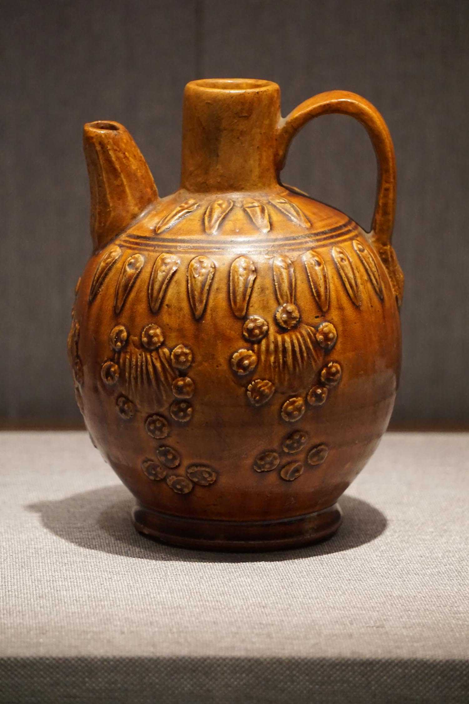 黄釉贴璎珞纹执壶辽