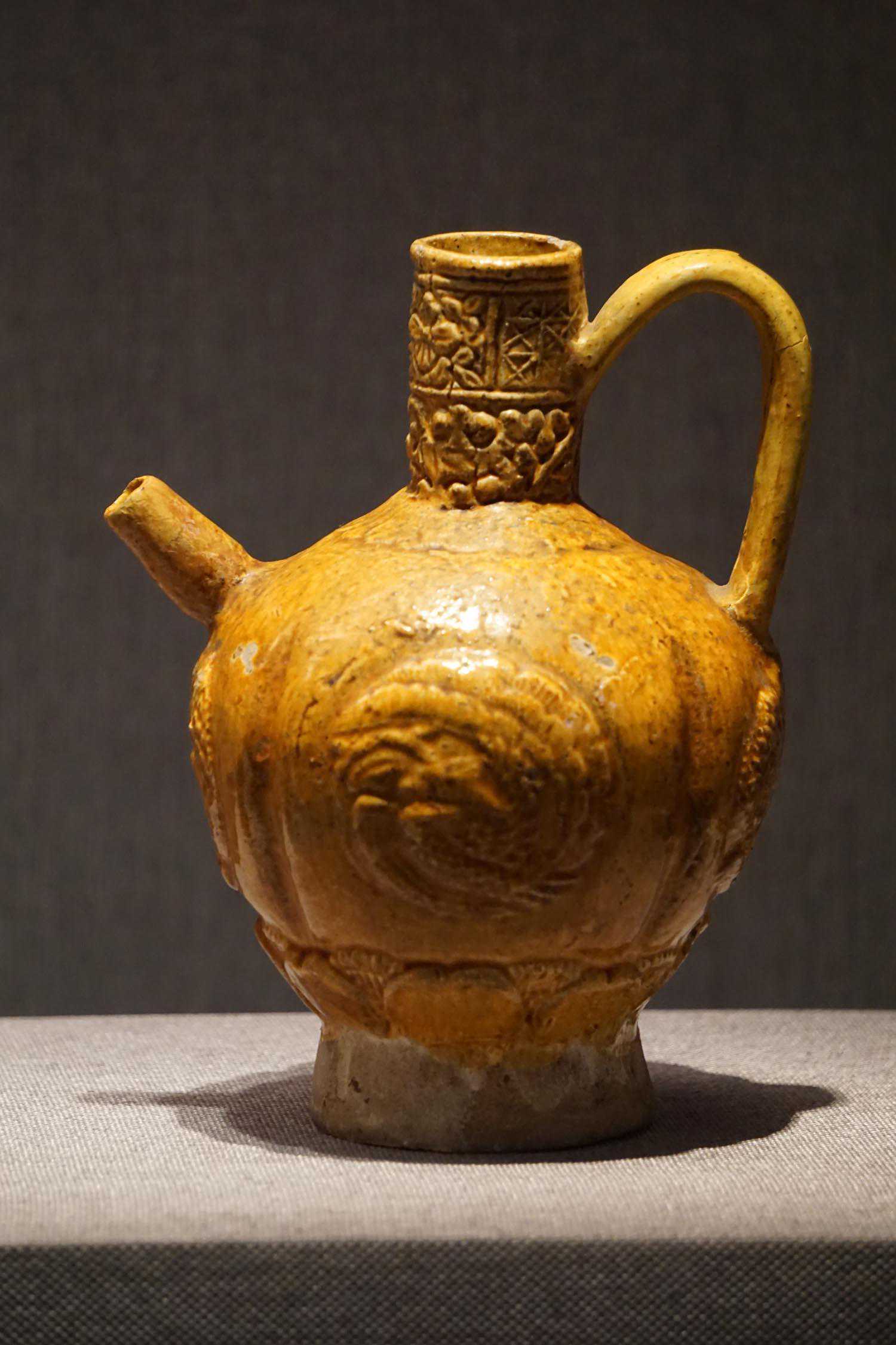 黄釉印团风纹执壶辽
