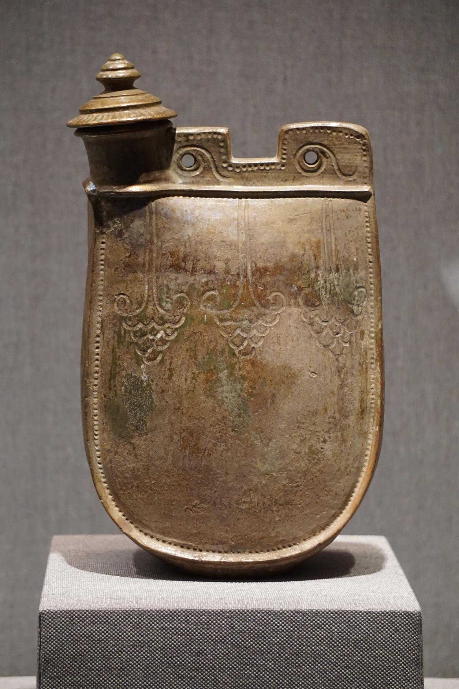 绿釉划花双孔鸡冠壶辽