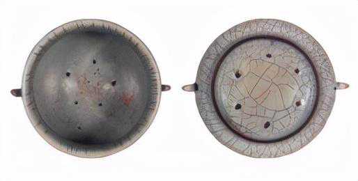 有一些专家认为,哥窑,金丝铁线是后人去用某种方法,把它染上的,其实这是一个错误的观点。根据出土瓷片,在高倍的放大镜下面,可以看得出来,它的紫金土里面的含铁量非常之重,这个开片在窑里第一次开片的时候,胎里面的铁元素就已经渗出来了,就是我们今天看到的铁线一样的,像线一样的。
