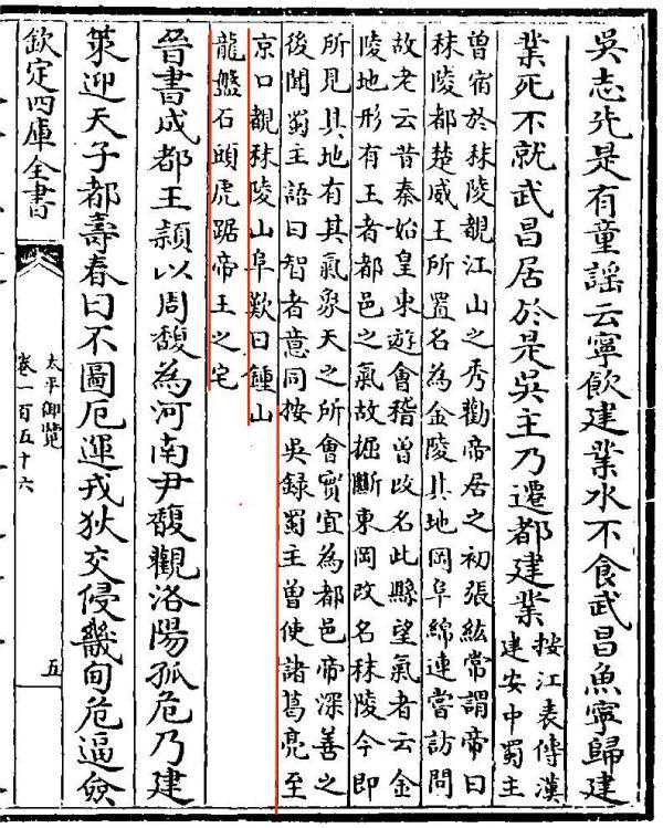 《太平御览》卷一五六引张勃《吴录》:“蜀主曾使诸葛亮至京口,睹秣陵山阜,叹曰‘钟山龙盘,石头虎踞,帝王之宅。’”