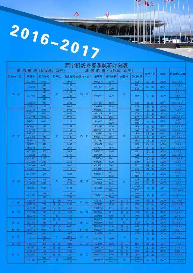 新增航线情况是这样,下面我们就详细看一下今年西宁机场冬春季航班时刻情况如何: