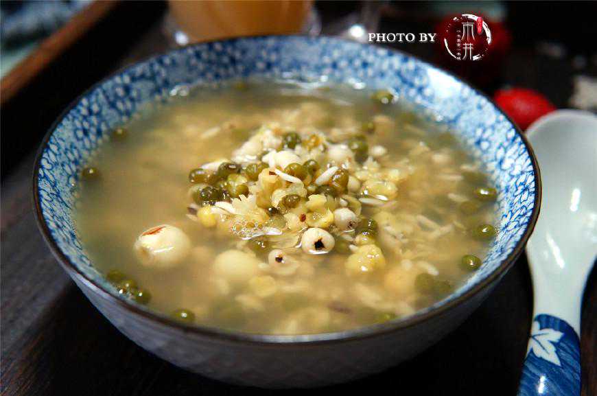 五、绿豆米酒汤绿豆汤是夏季不可缺少的降暑神器,夏天没胃口时喝一碗,爽口止渴又开胃,绿豆虽去火消暑,但它性寒,属于凉性食材,体质虚弱的人喝多了易腹泻,可以将绿豆和米酒搭配,米酒属于温性食材,能中和绿豆的寒性,这样组合起来怕寒虚弱的朋友们也可以经常喝了。