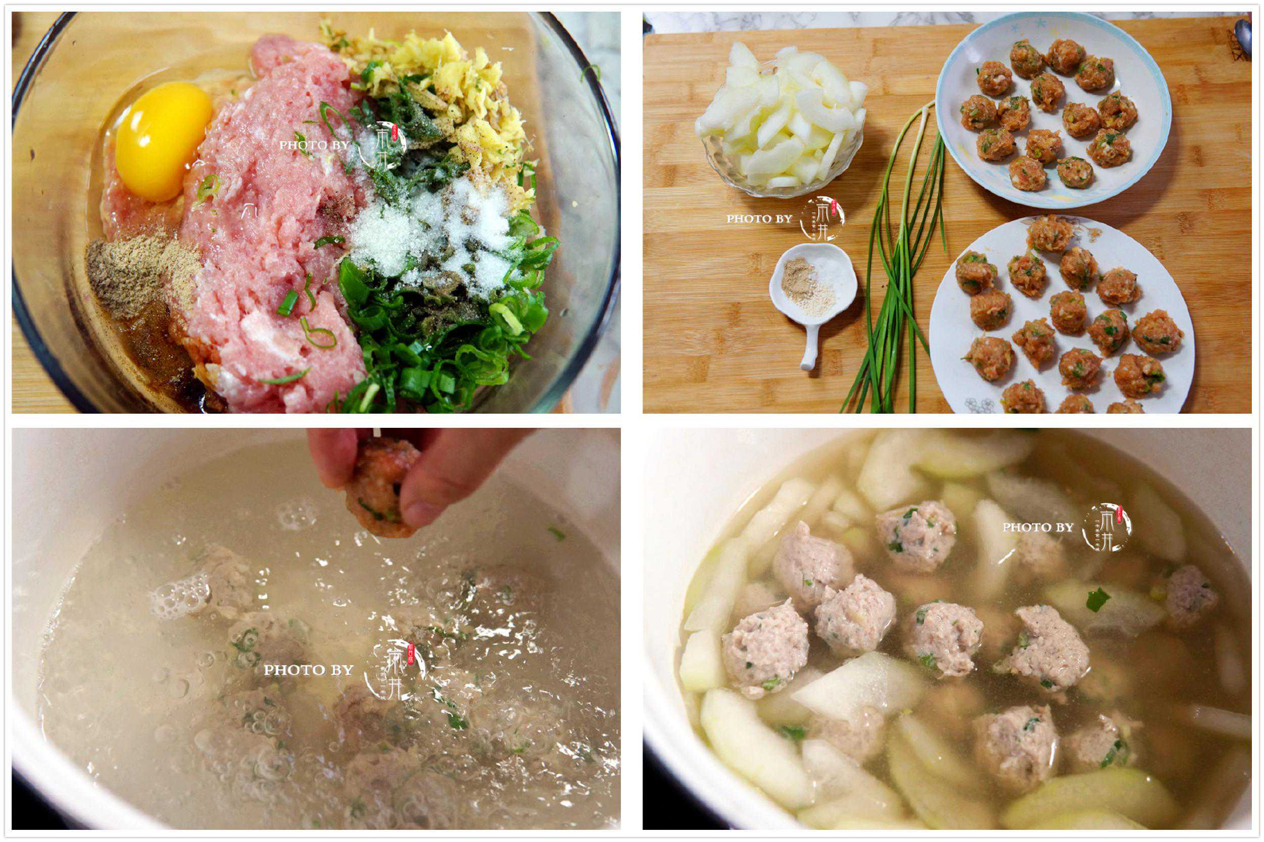 四、冬瓜丸子汤夏季是吃冬瓜的好季节,冬瓜水分含量大,营养丰富,含有钙、铁、磷、维生素等多种微量元素,表面的白霜还有清热润燥的功效,夏天用冬瓜煮汤,低脂减肥,经常喝皮肤也没那么干燥了。