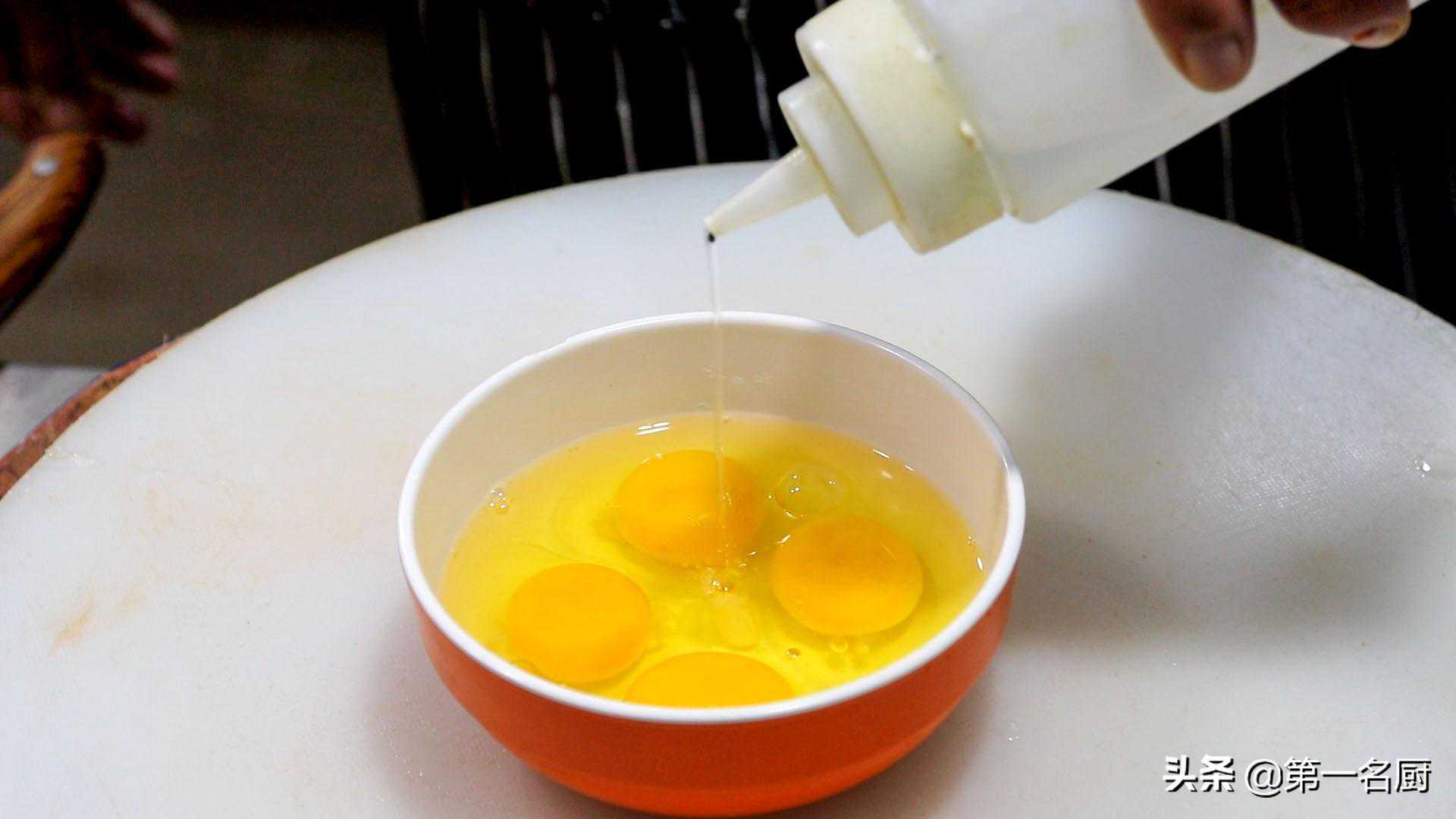 准备一个小碗,打入四个鸡蛋,加入食盐1克增加鸡蛋的底味,再加入白醋几滴用筷子搅匀,加入白醋可以起到去腥增香的作用。