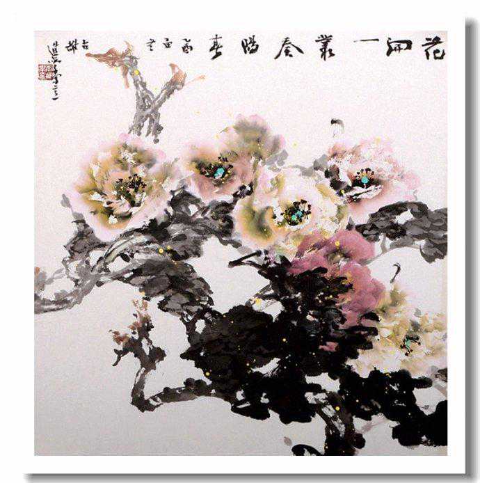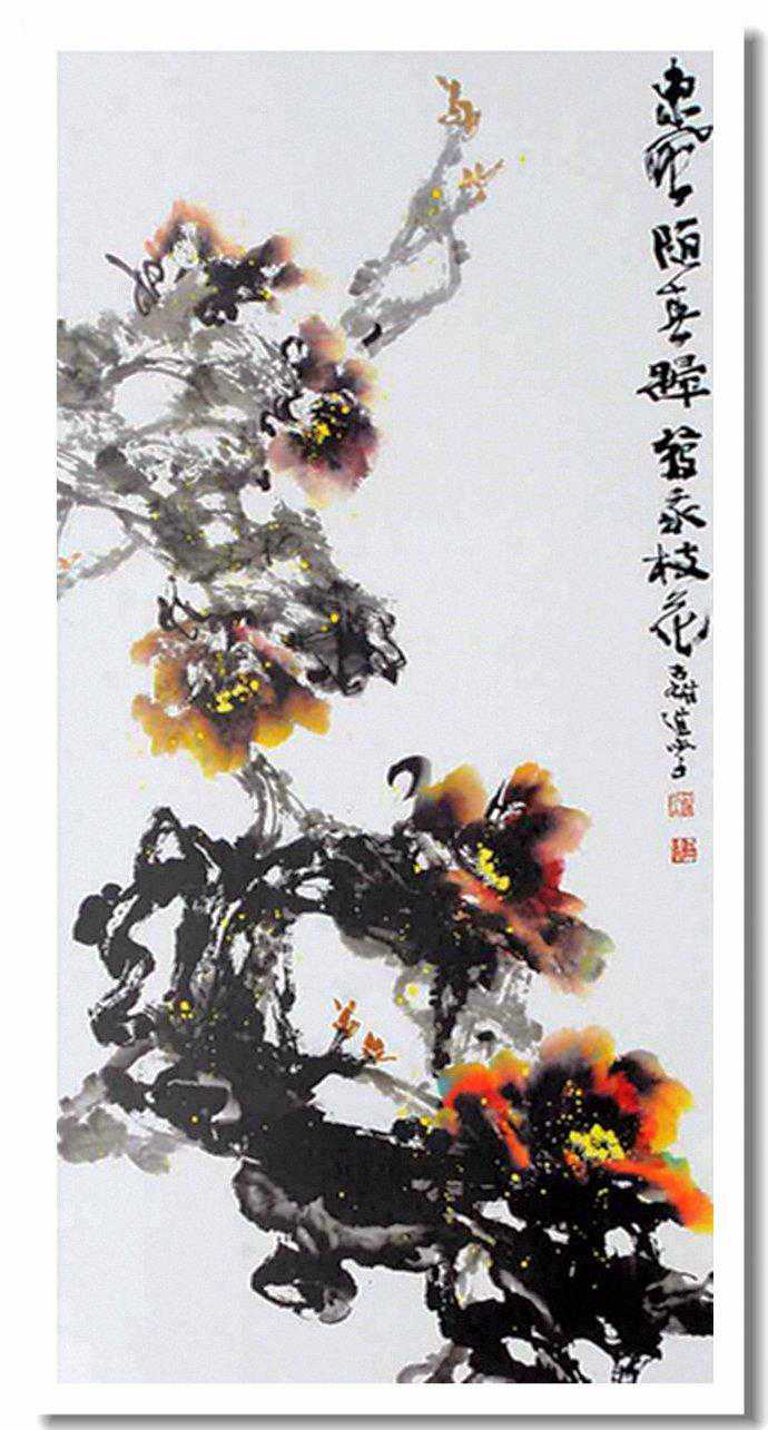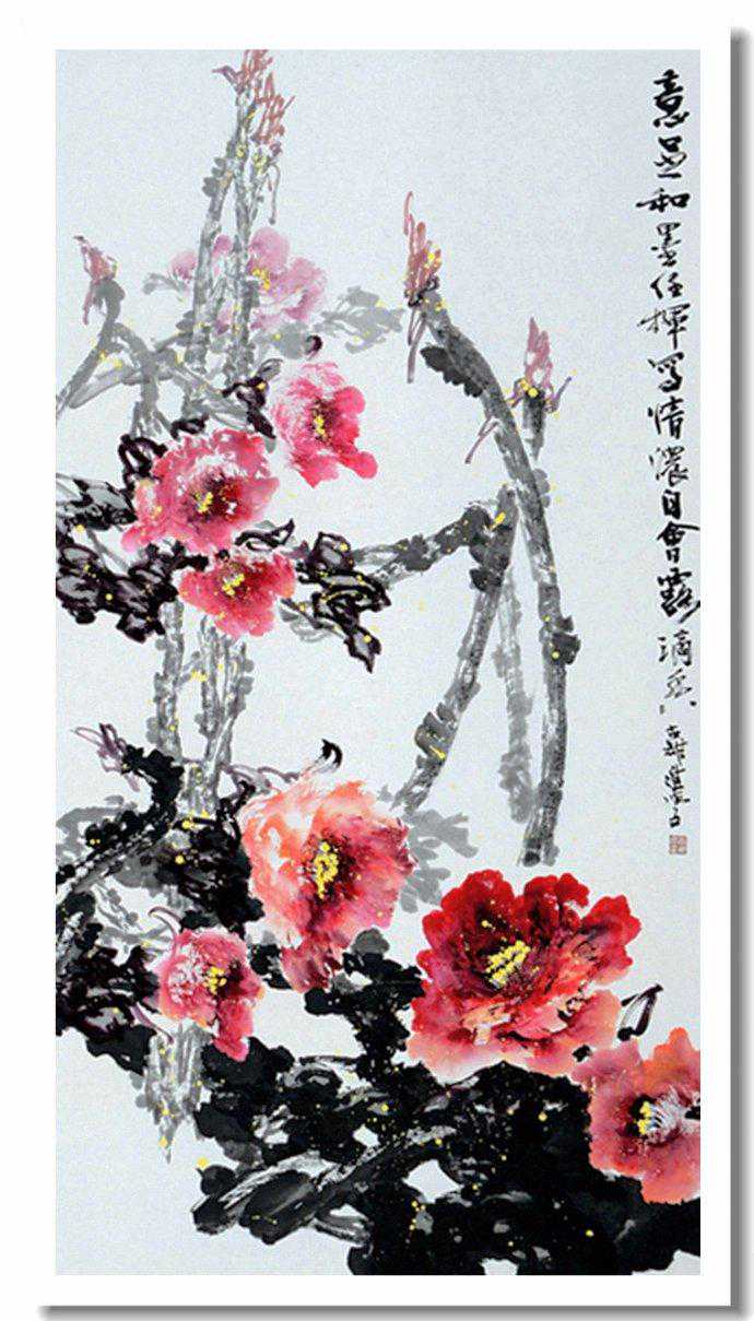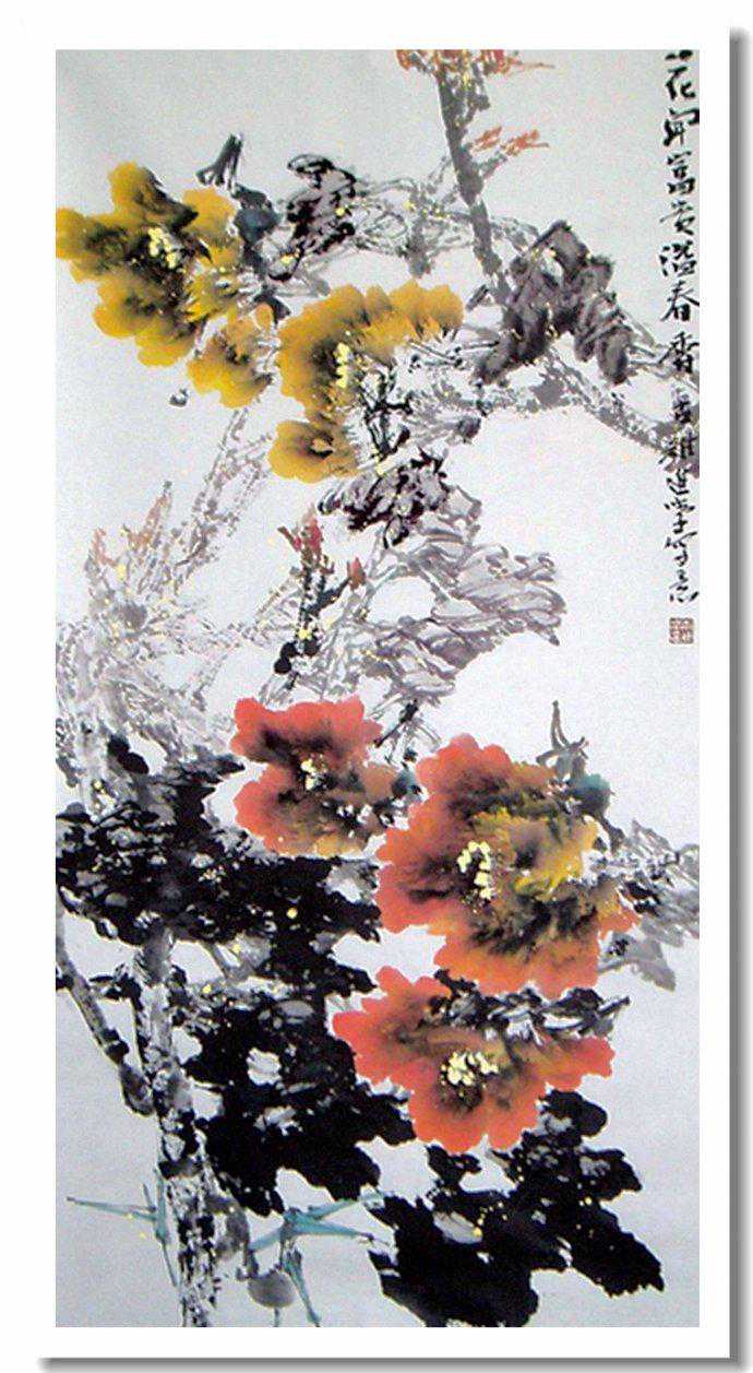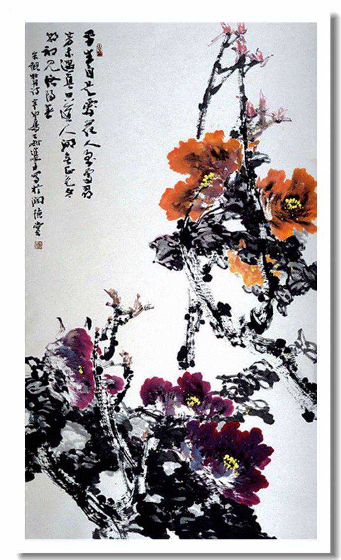 李进学是当代书画大家,他以潘天寿为形质,笔墨苍古、沉雄老辣、形简意远。他以吴昌硕为精神,构图宏阔、浑厚苍茫、大气阳刚。他极力推崇“书画同源”的古训,力求以书入画,以画入诗,追求画中有书之境界。他以魏碑运笔弄墨,将魏碑之雄强、浑厚和高古之气、姿、韵融于绘画。他以浑厚的书法功底狂笔横扫,一洗牡丹画哗众之情态,不仅表现出大写意的外在特性,而且赋予作品以人文的文化理念,枯笔恣肆、质中求润、高雅清新、文意深邃,深刻诠释了正宗中国画笔墨的理念和文化表现,成为脱俗之典型。