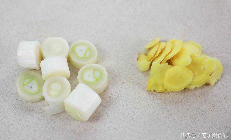 ▼2、葱白切成小段,生姜切片