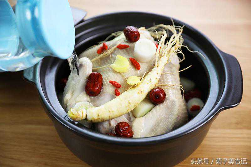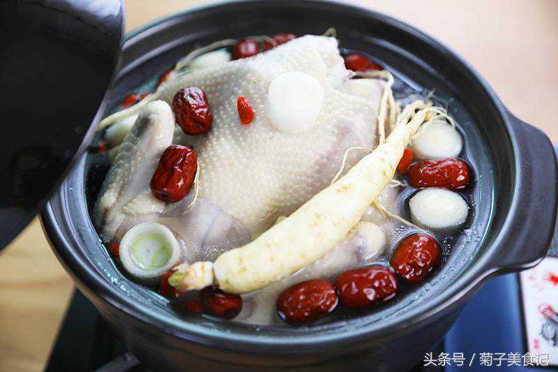 秋冬季,当然是用美食进补的绝佳时机,菊子姐姐今天为各位吃货大大推荐的,就是美味而且营养的鲜人参炖鸡汤,做法很简单,加了红枣和枸杞,适合全家人一起吃哦!