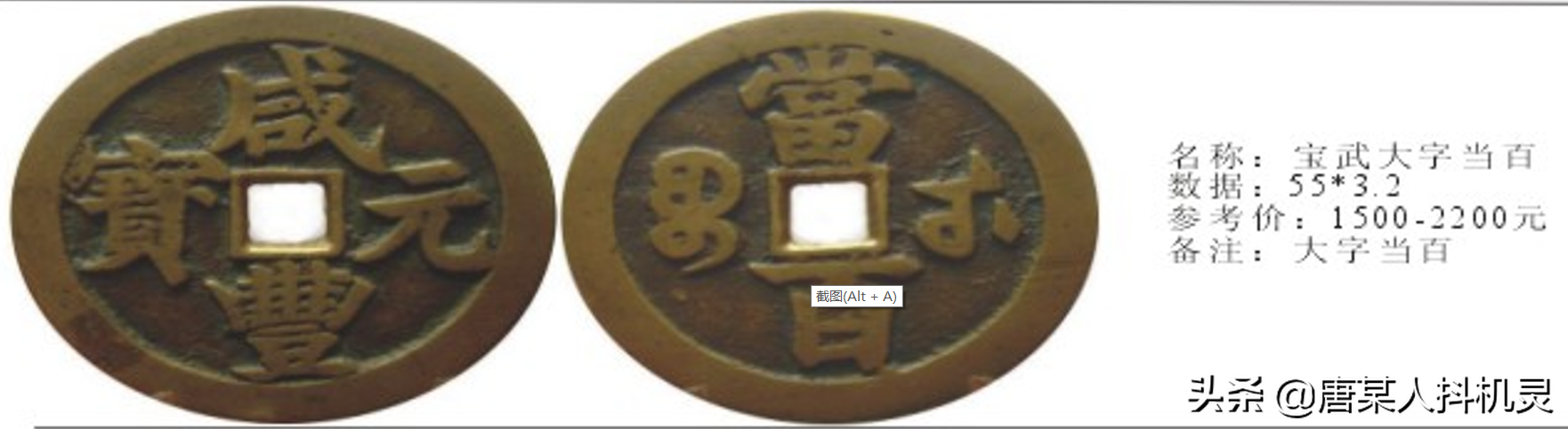 当百,在当百钱中相对常见,尺寸超过55mm。也有见背月版本,相对少见。