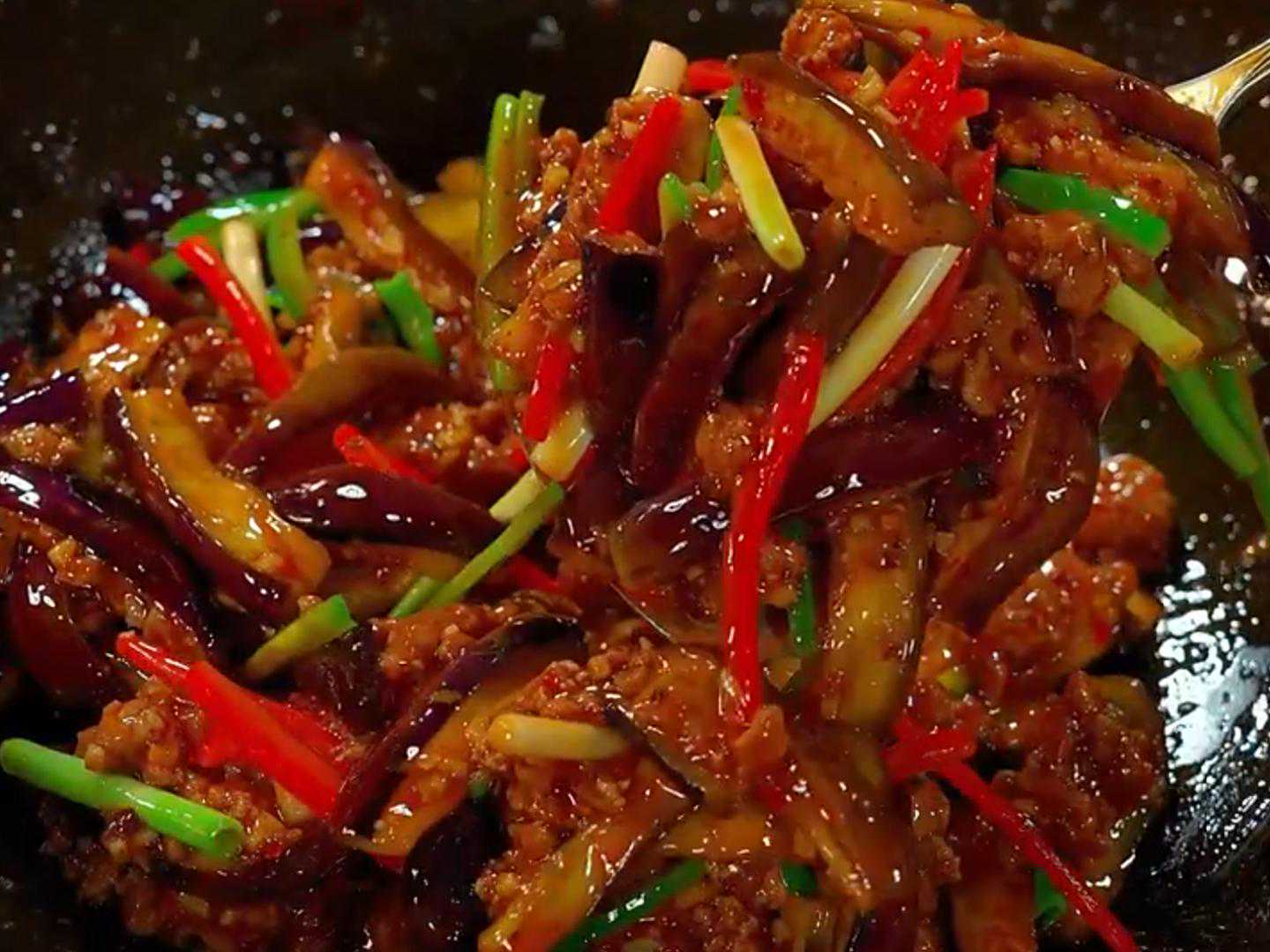 茄子、肉末、豆瓣酱、青红椒、葱段。