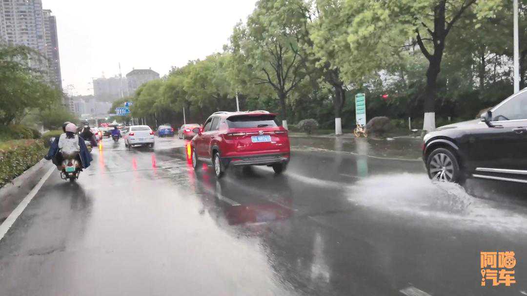 雨比较大的情况下,现在很多车都是带自动启停的,关闭自动启停,万一到时候在低洼处,车子熄火了,刹车一松,车子再给你一启动,嗝屁了。