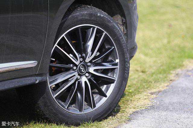 新款QX60配备20英寸双色铝合金轮圈,轮胎则是来自普利司通的DUELER系列,尺寸为235/55R20102H。