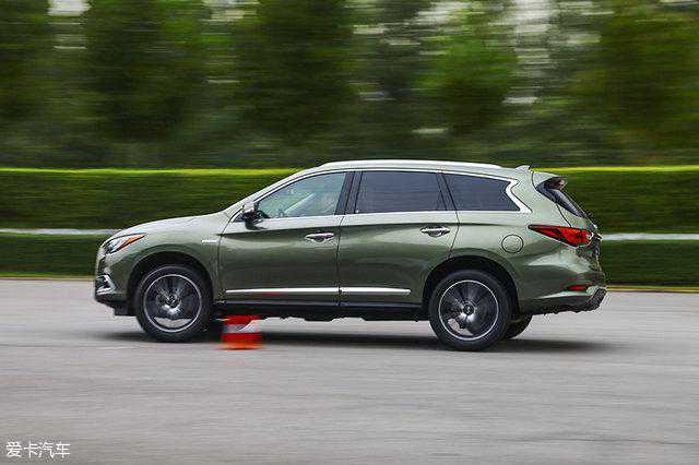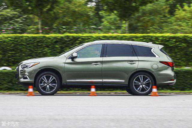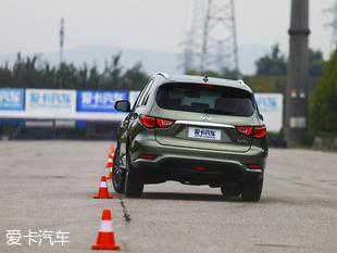 驾驶QX60这样的中大型SUV做绕桩测试绝对不是什么有趣的事,较大的车重加上偏软的悬挂会大幅延缓了车辆的重心转移速度,较长的悬挂行程让车身出现了较大幅度的侧倾。另外,QX60的电子稳定系统并不能完全关闭,在车辆刚刚突破极限时就会跳出来进行干预,会在一定程度上打乱车辆的绕桩节奏。