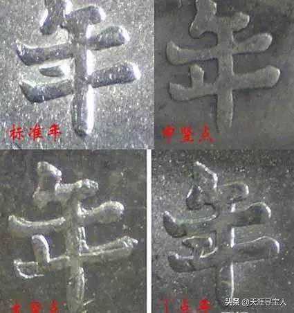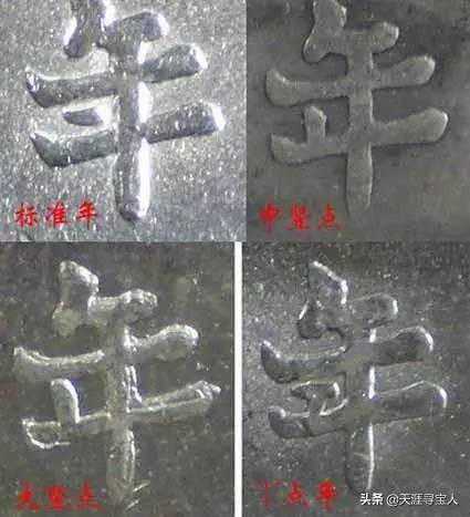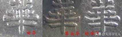 草头华(背一定是实心叶)有节上点(常见),节上无点版,田字华(背一定是空心叶)有普通版,牛口造版,元宝点年版,厂点年,T点年,7点年,竖点年,异胸章(类长城印记)背面嘉禾修模版。