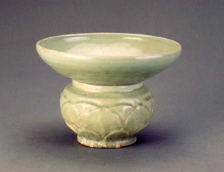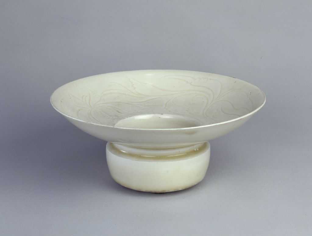 唾液的容器,是卫生用具之一。吴、晋时越窑大量烧制青瓷唾壶,造型为洗口,短颈,丰腹平底。宋代定窑、龙泉窑、越窑都有制品传世,造型变为由下、下两截组成,上部为盘形,下为扁圆腹,浅圈足。北方宋墓壁画有仆人手捧唾壶的形象。