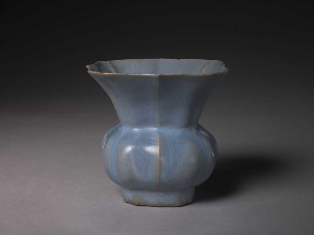 2.明代宜兴窑仿钧天蓝釉方渣斗