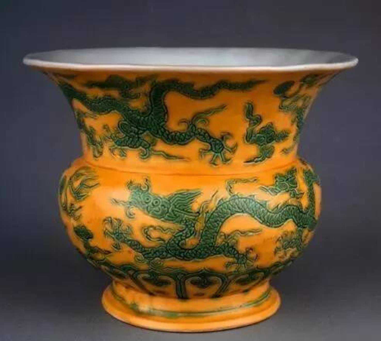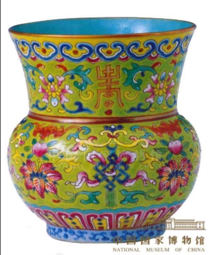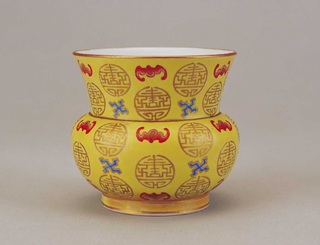 4.清同治黄地红蝠金彩团“寿”字渣斗