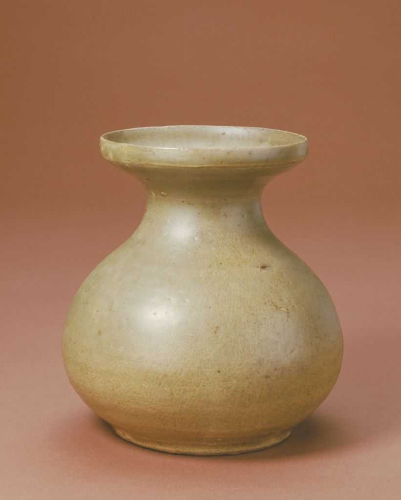 为敞口,束颈,圆鼓腹,平底,有圈足或假圈足,有的带盖。三国西晋时,肩腹部多饰网格带纹、联珠纹、铺首等,东晋南朝时,有的在器口点饰褐彩,器身多无纹饰,唐末至宋代,或在器身刻莲瓣纹。