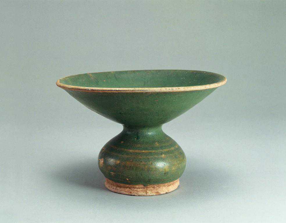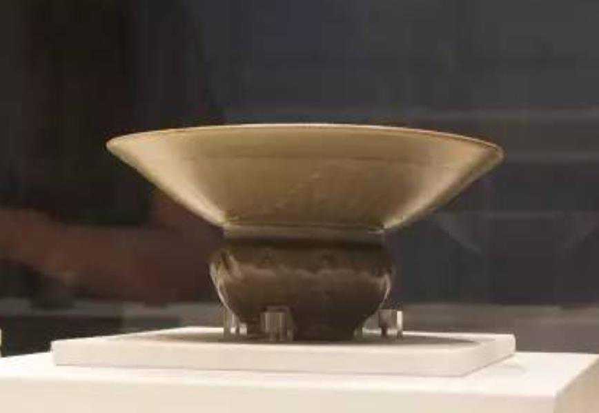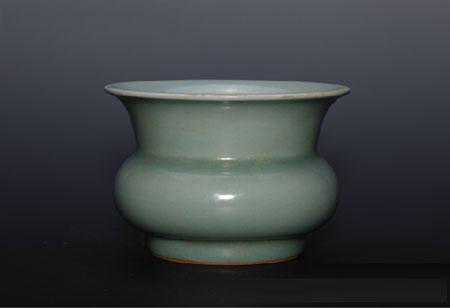 8.宋代耀州窑薄胎青釉贴塑人物渣斗