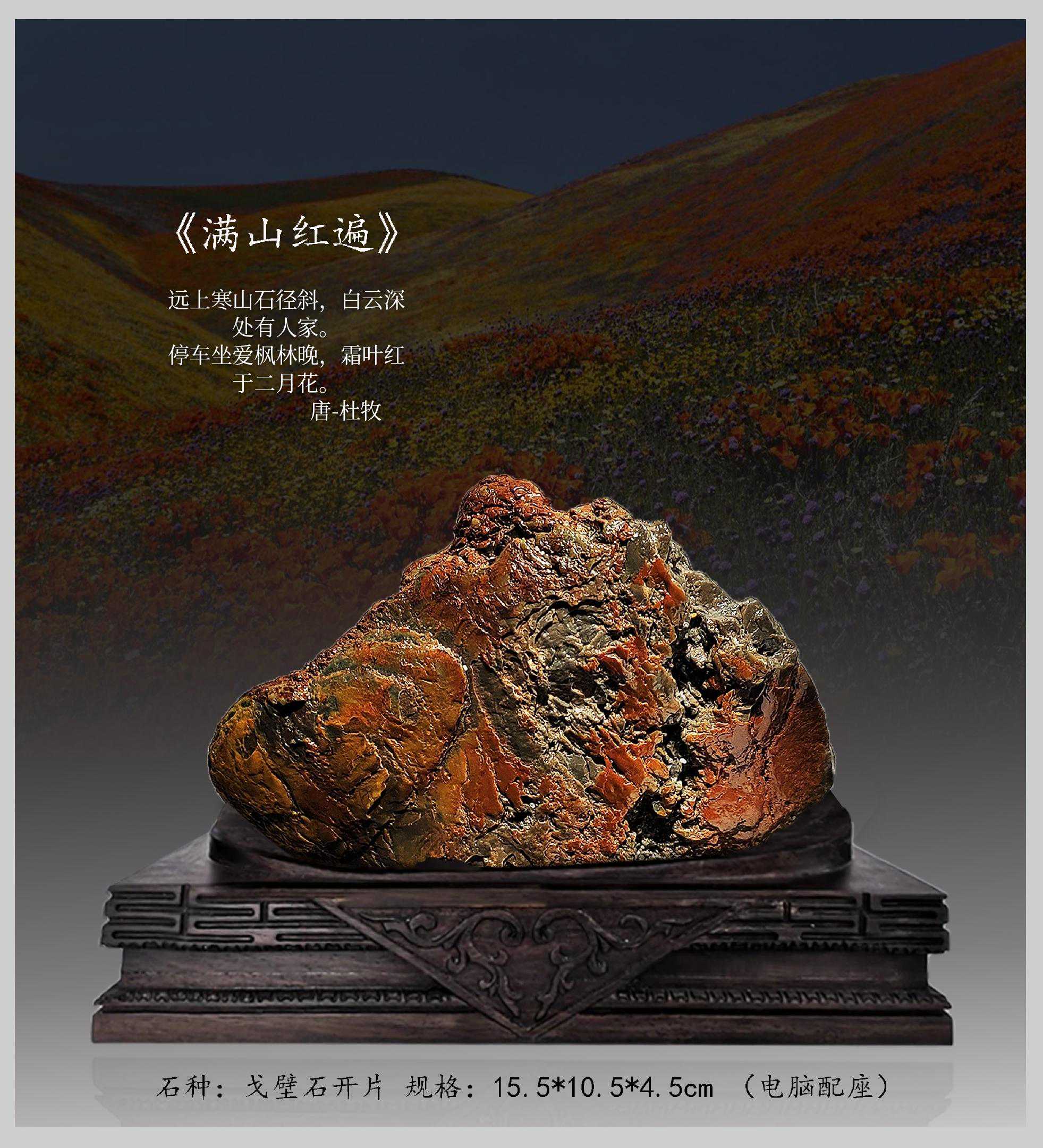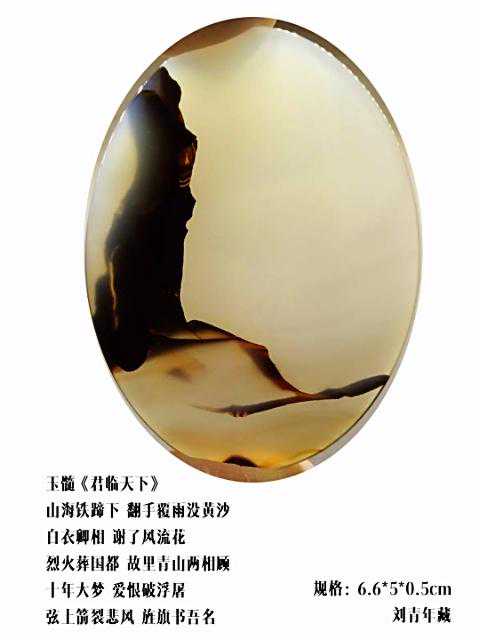 20年前,老刘又与奇石结缘,成为中石协创会时的初始会员,老刘收藏石头不计较石种,只要美,只要观赏主题自然天成、稀缺,形成难度大,能读出文化,品出故事,价高点也行,只要拿得动一定拿下,如果买不到手就会吃不香,睡不着。一次在洛阳石展上看到一方清江石,价高缺银子,就同卖方朋友协商,可否暂欠一部分,卖方欣然同意。石头拉回老家后,老刘立马带上早年收藏的纪念金币,急奔北京马甸市场转让还款。第二年还是在洛阳石展上,他又看上了一方大块清江画面石,后命名《群仙赴会》,因色彩、纹路都非常奇绝,寓意也好,可遇而不可求,但还是缺钱,没办法,老刘只好在石展上直接往美国打电话,让在美国斯坦福大学读研的儿子把他在学校贷的学费打10万过来,儿子说不买不行吗?老刘说全世界就此一方,我想买,错过了就再难遇上,钱以后可以再赚,同样的石头再找不来。儿子很孝顺立马给打了5万过来,老刘终于得偿所愿,满载而归。但后来老刘还是有点难受:为了自己的爱好不顾孩子的学习,我是不是有点太自私了。