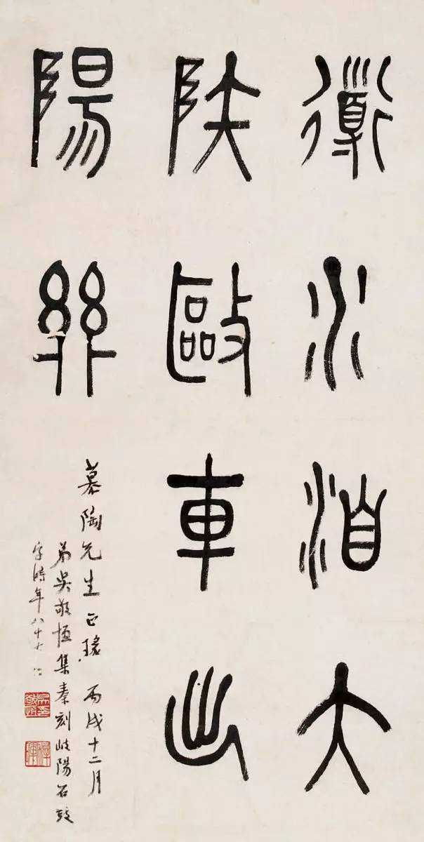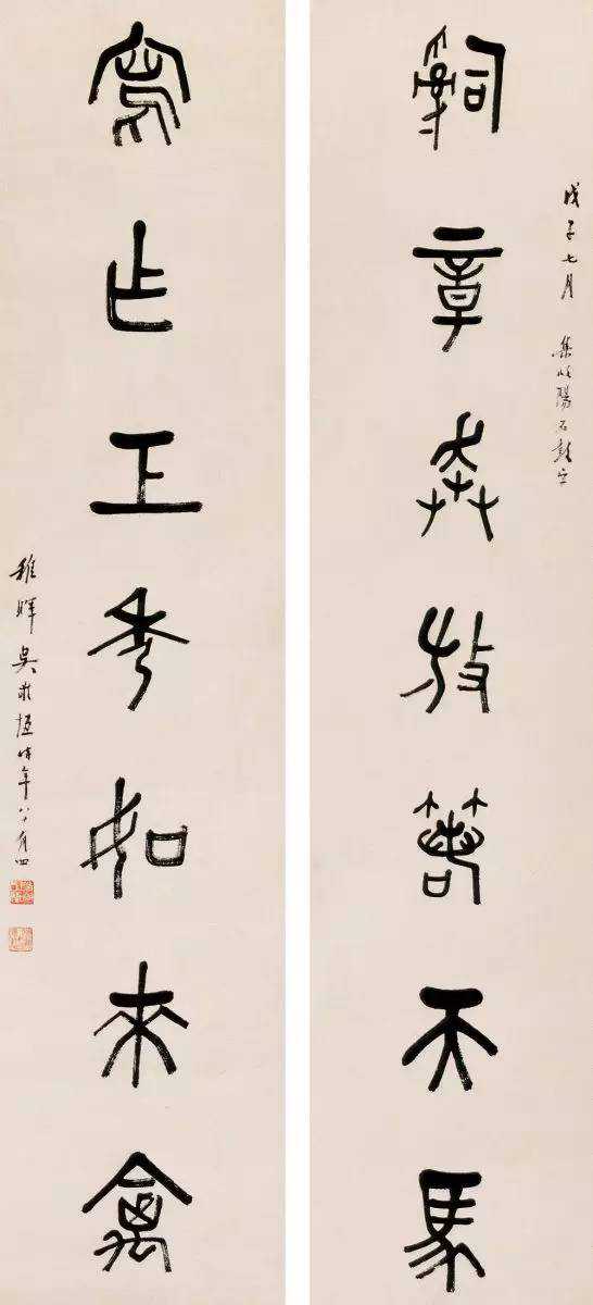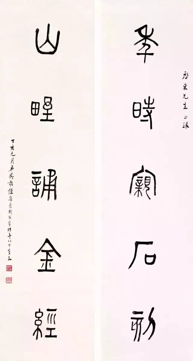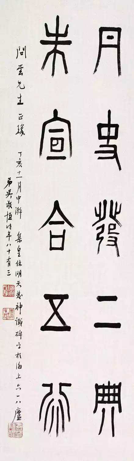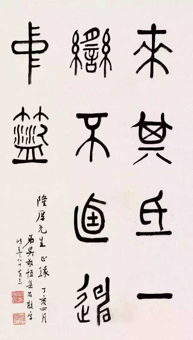 吳敬恆書法作品以篆書爲主,石鼓文爲大宗,兼及小篆、《天發神讖碑》等,隸書、楷書、行草都非常少,八十以後仍臨池不輟,佳作不絕。歷代真正將石鼓文寫得靈動鮮活者,應屬吳昌碩,線條豐厚飽滿,略參行草筆意。吳敬恆的石鼓文,較注重結體平整,下筆從容平緩,線條粗細變化自然,另成一體。