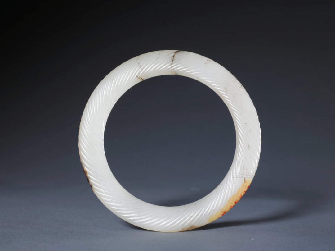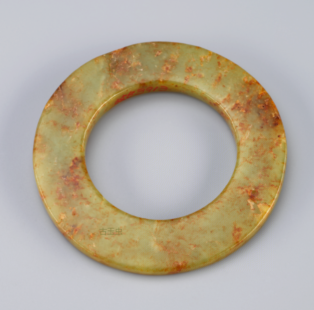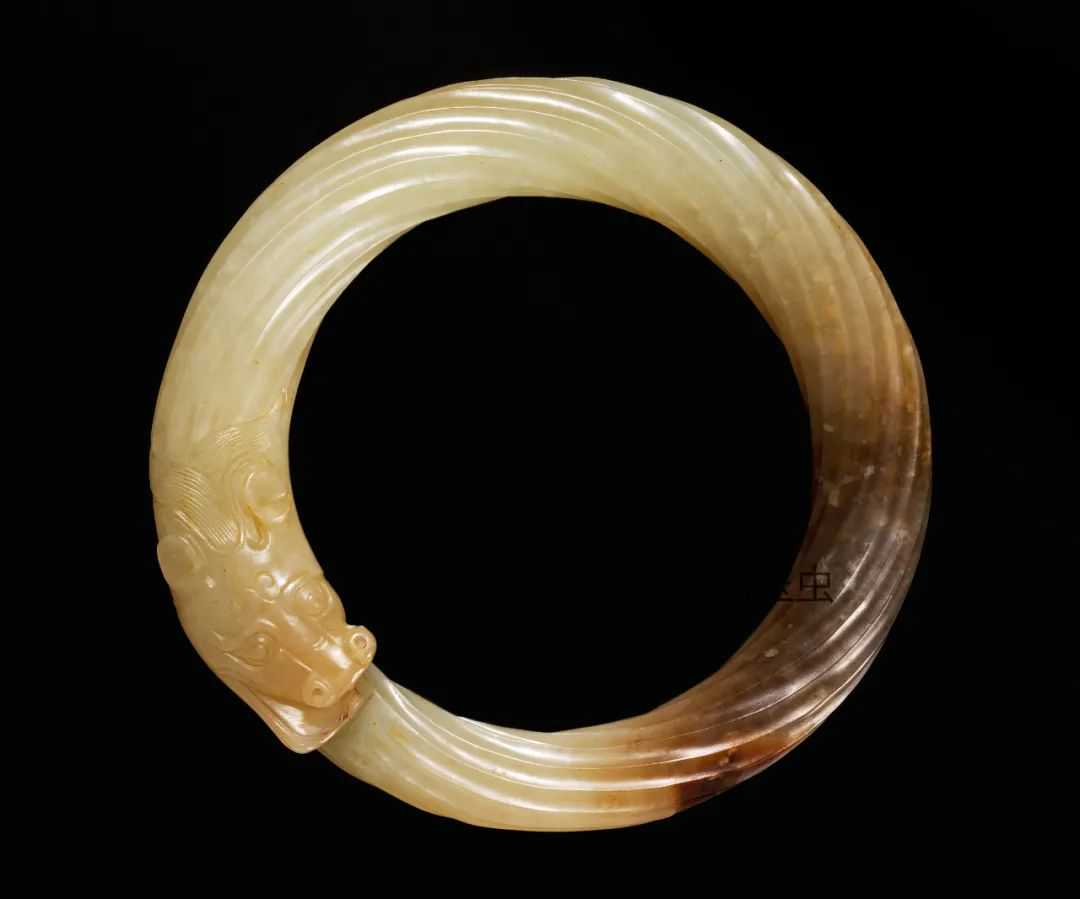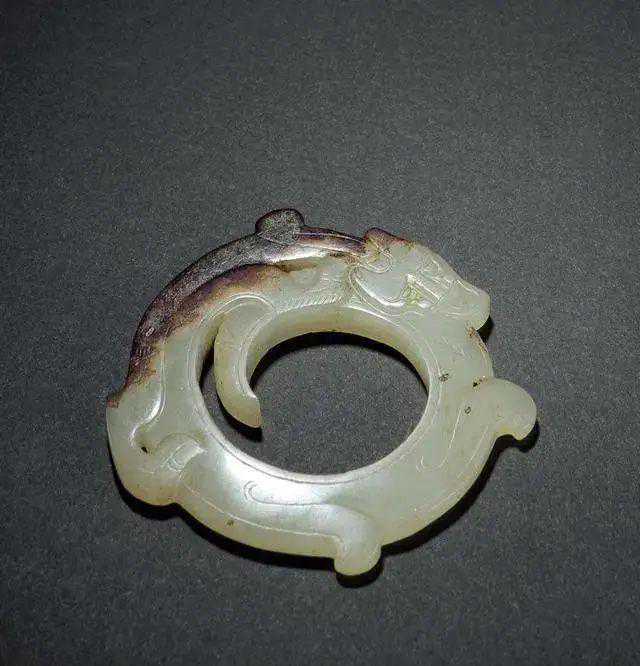 汉白玉带沁咬尾龙环