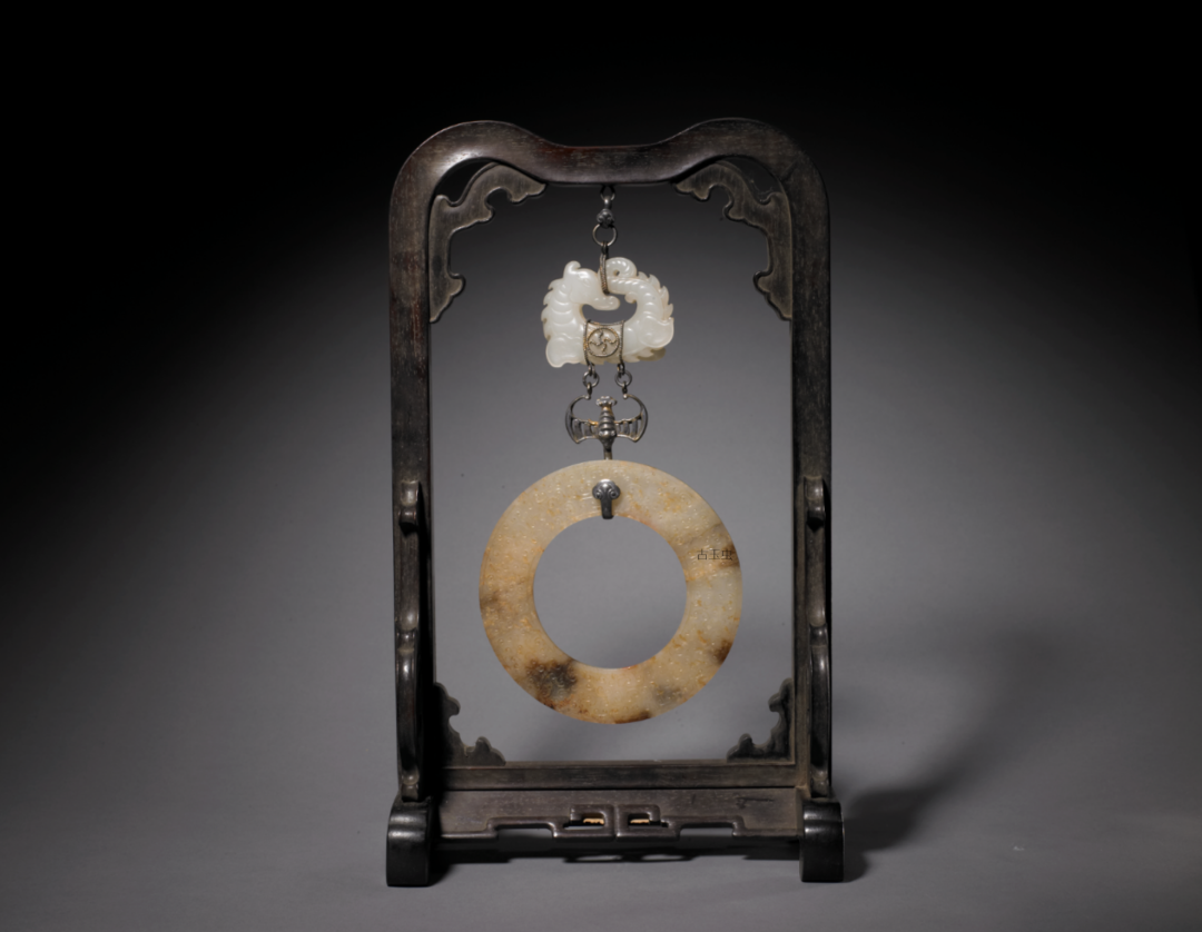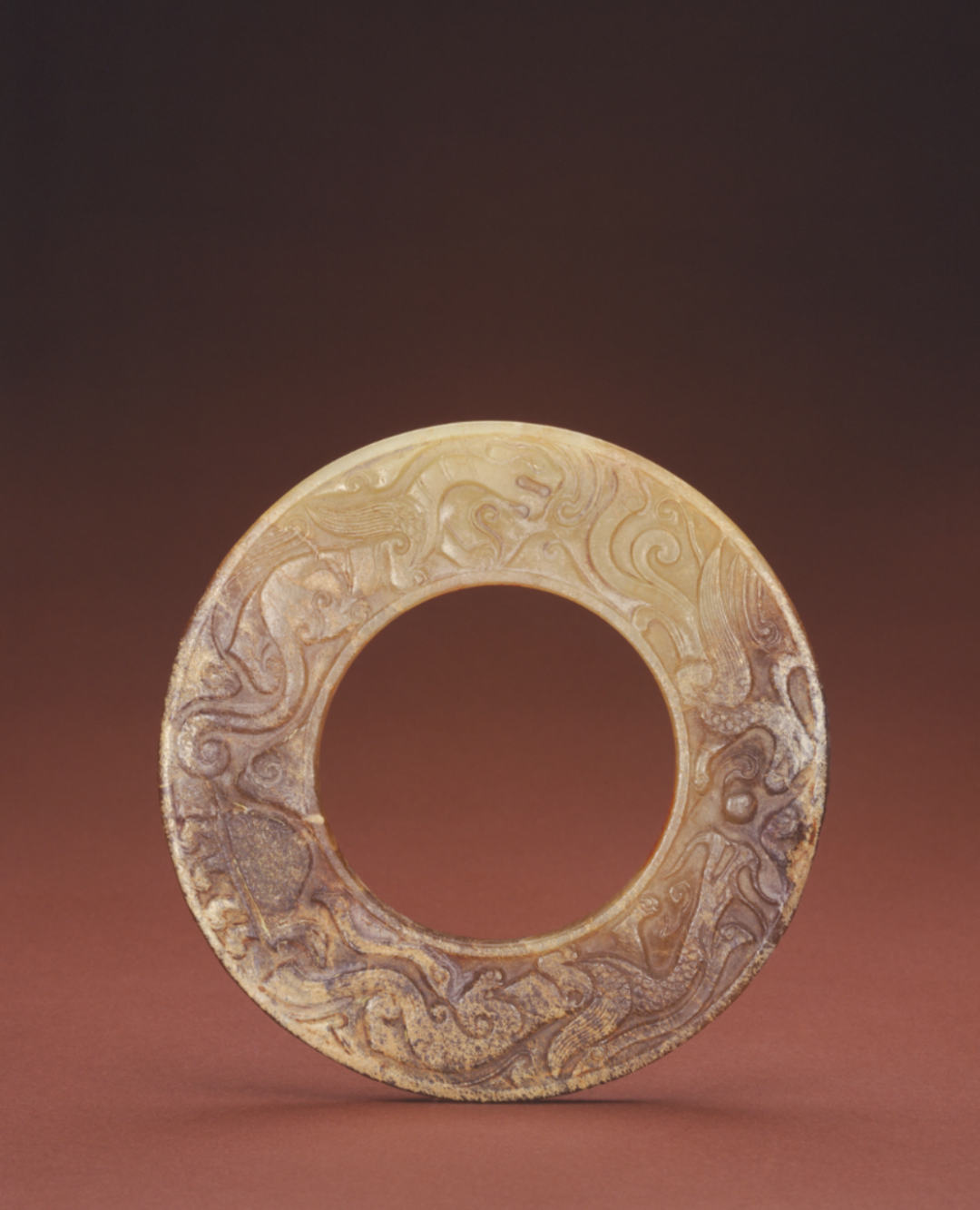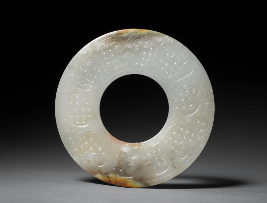 汉白玉带沁咬尾龙环