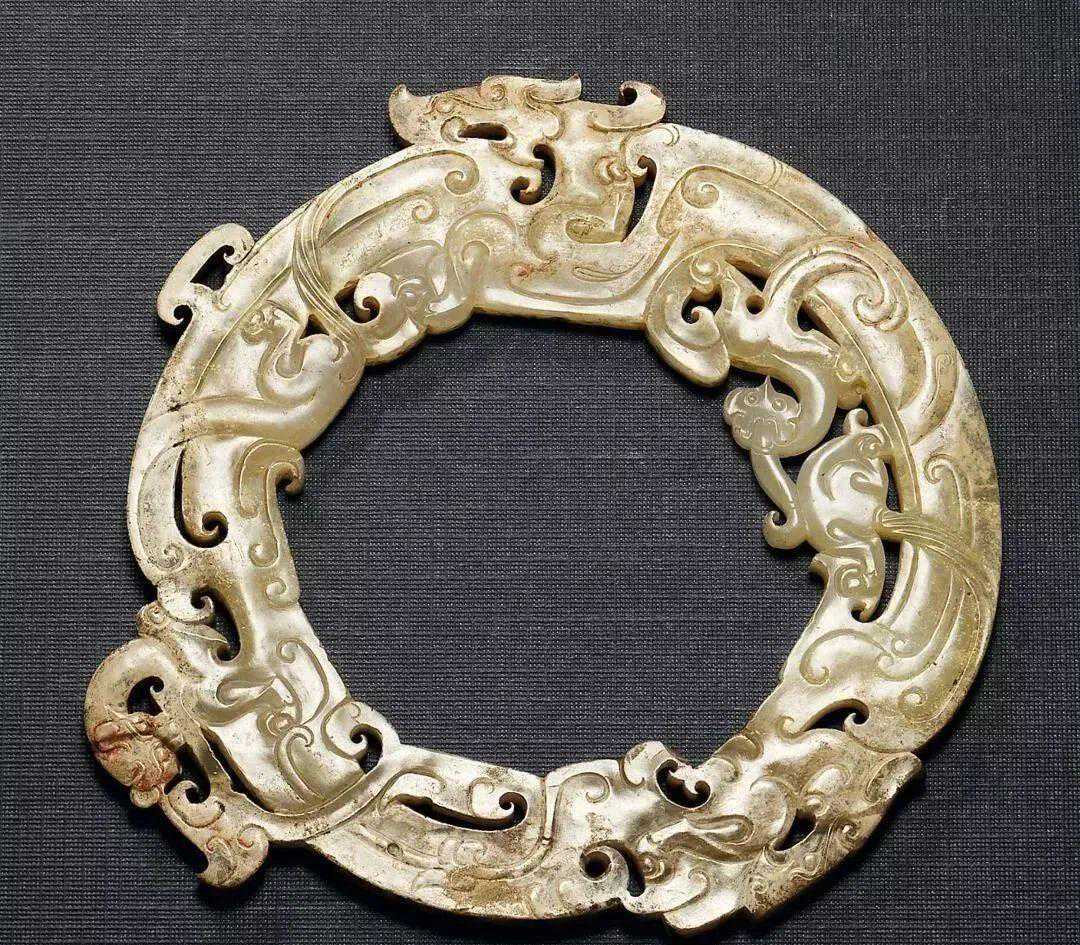 战国至汉白玉镂雕螭龙环
