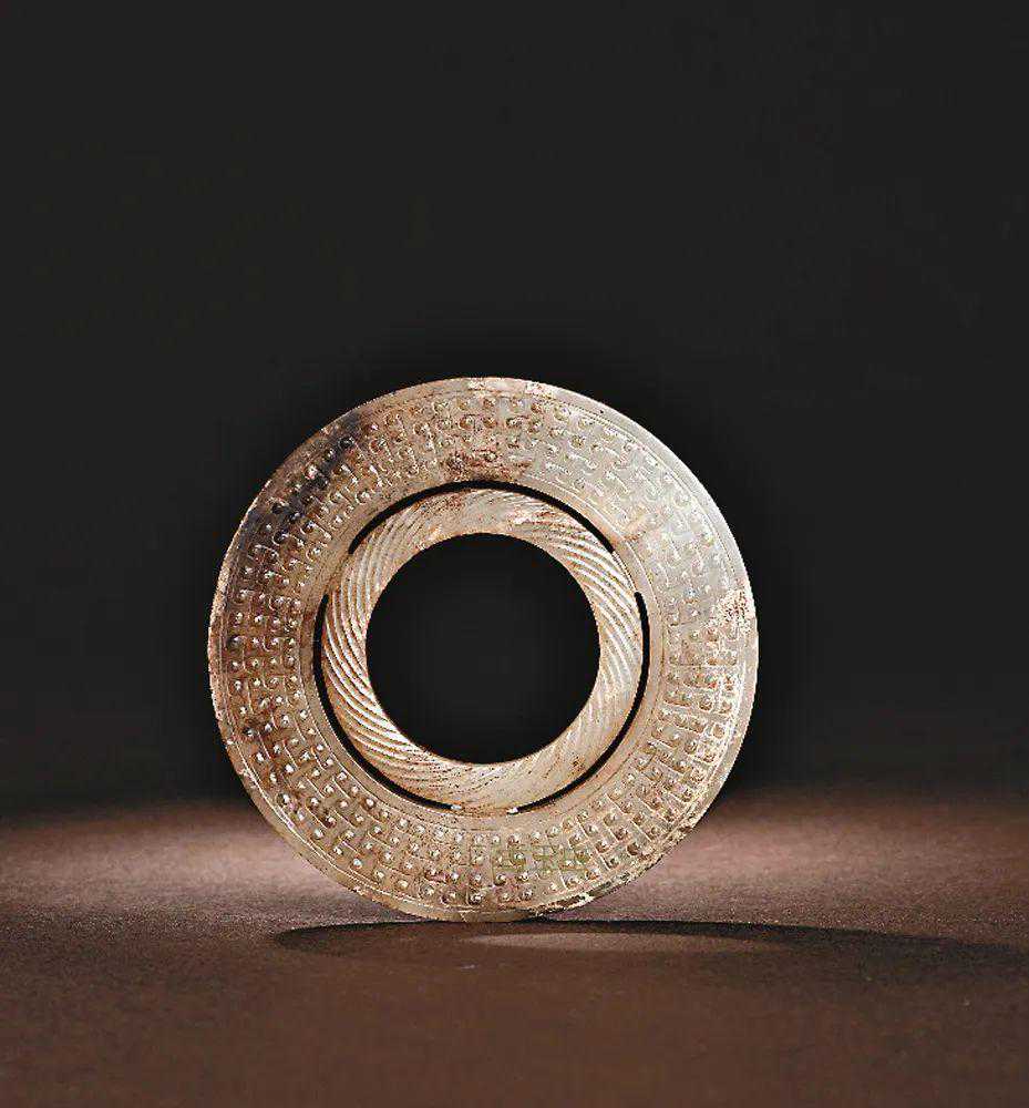 战国勾连穀纹绞丝纹双联玉环