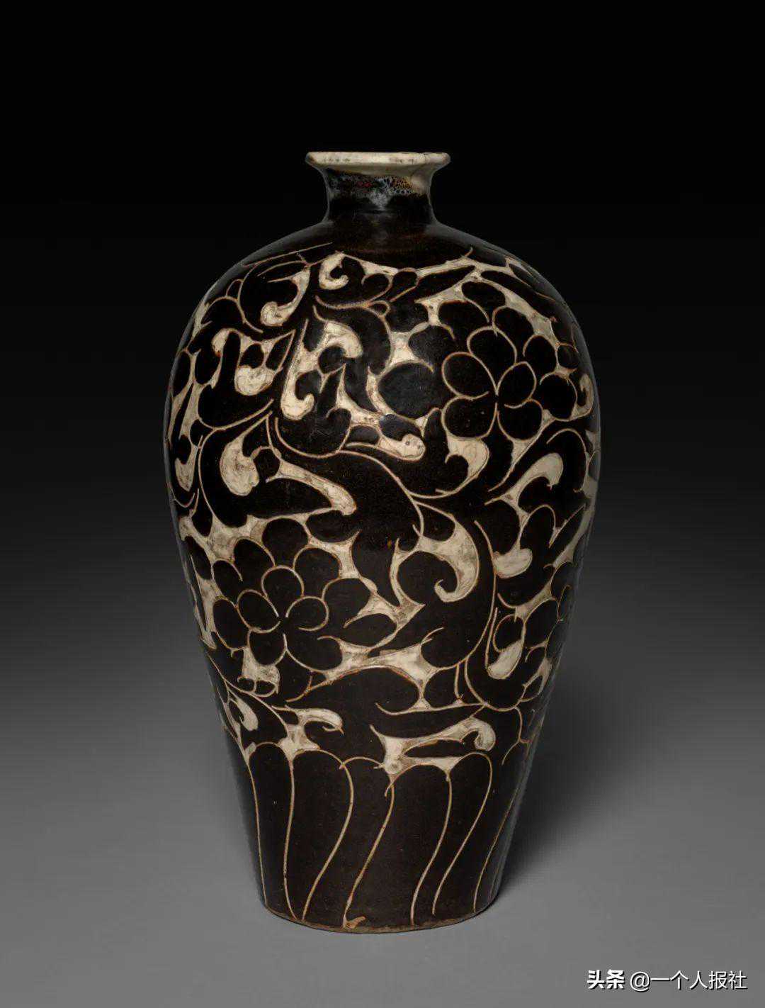 宋磁州窑黑釉剔刻花梅瓶