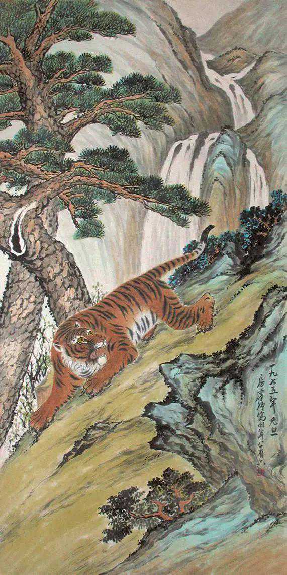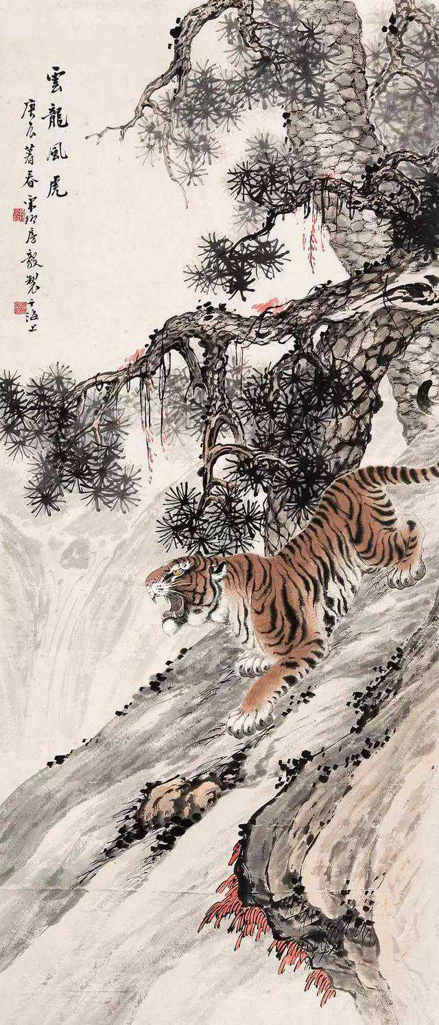房虎卿(1889-1979),初名毅,号房山。武进夏溪人。曾任常州市政协委员、市国画院联谊会副主任、江苏省文联委员、省国画院画师等。房虎卿擅长山水、松石、蔬果、花卉,尤善画墨龙和虎,令人叹绝,名噪国内。他画虎定要画出老虎凶悍的特性,造型姿态威武得体,包括虎毛的用笔,劲峭有力,画得逼真,周围环境的气氛烘托,使人觉得有几分胆寒,百兽之王被他画得虎虎有生气。他的花鸟画也很有特色,用色清雅,布白严谨,生动活泼,是典型的“海派”画风。