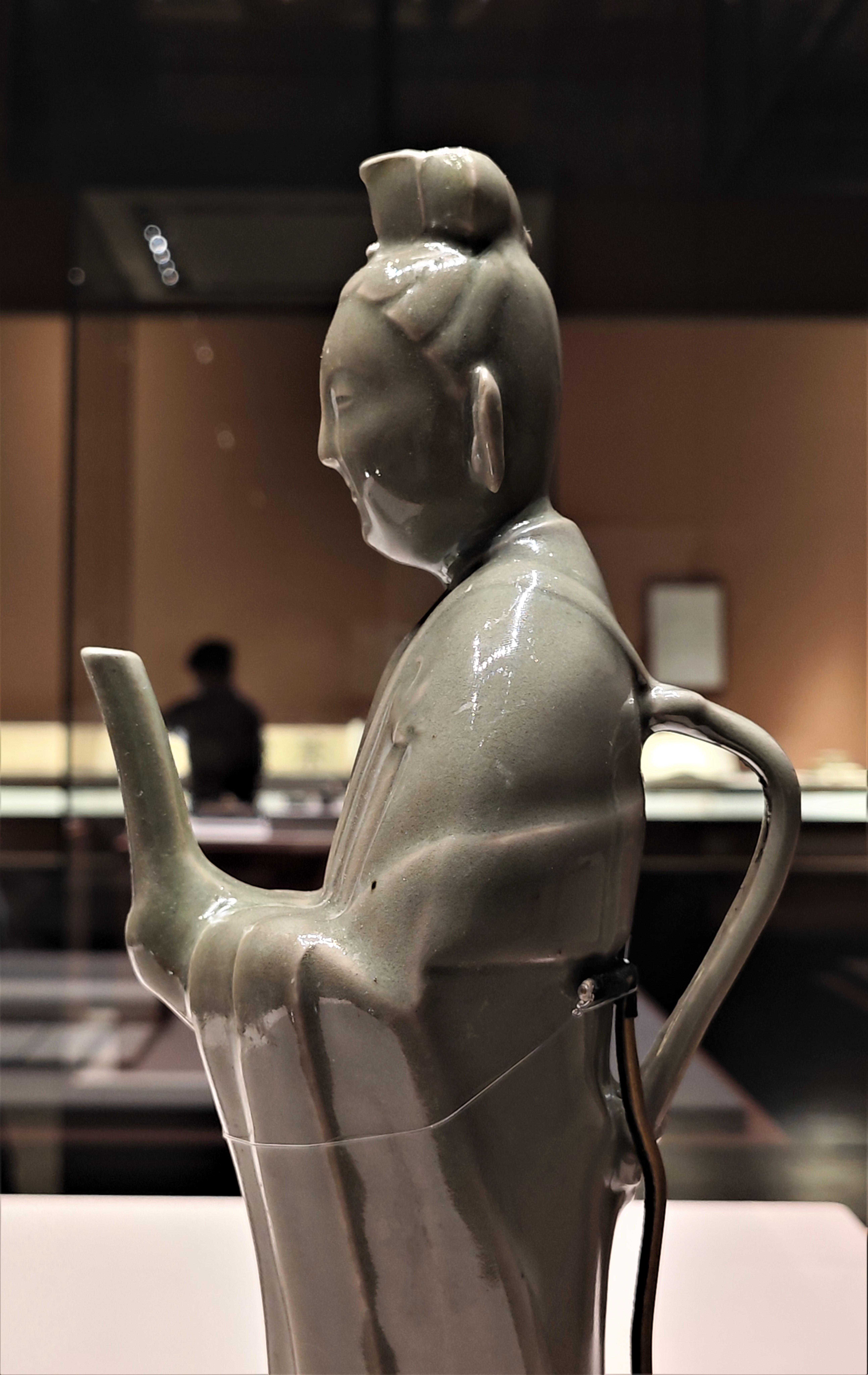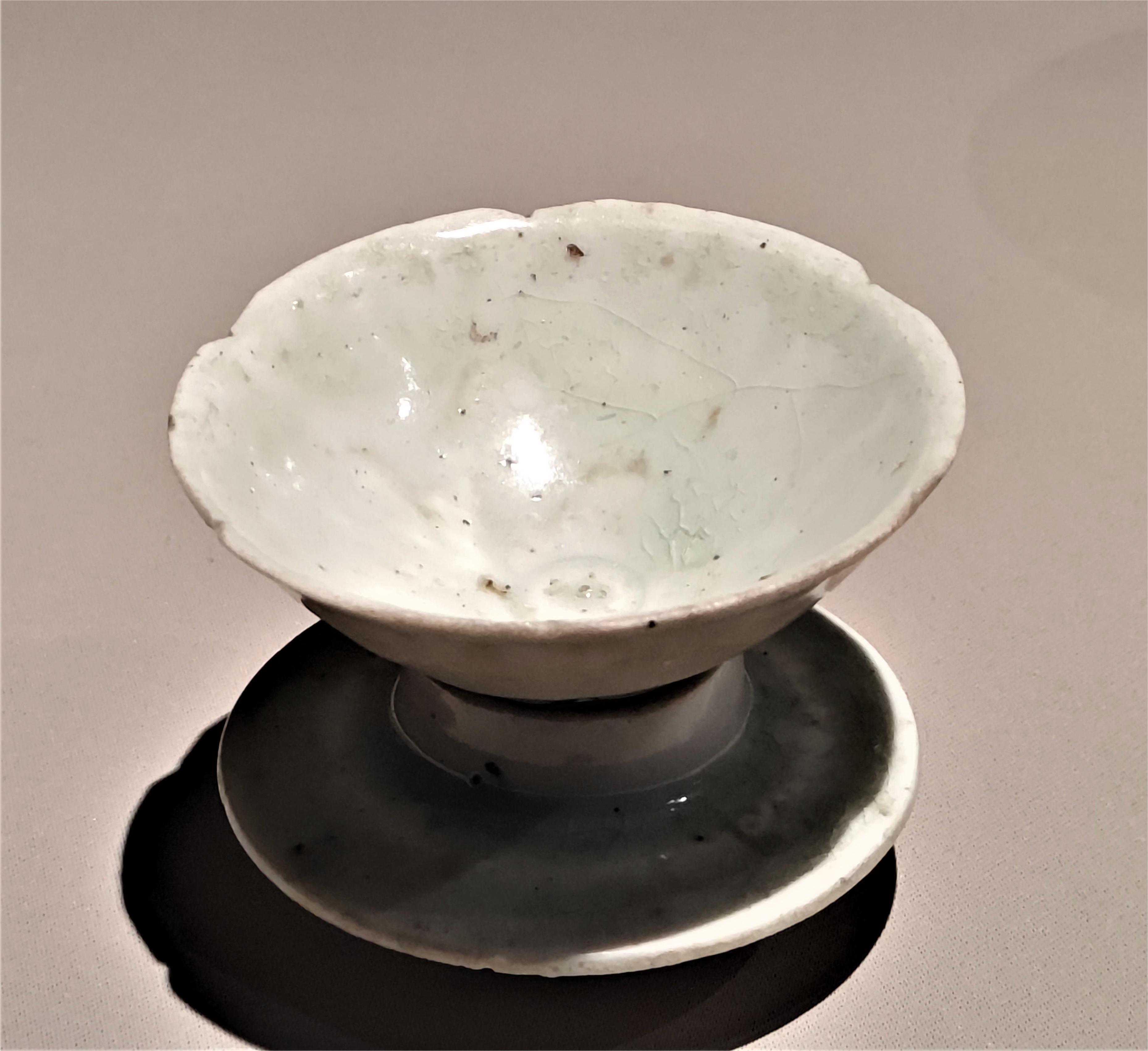 至宋代,“斗茶”之风兴起,在当今影视剧中得见。茶艺与茶具相比前朝更是讲究。茶的色香味,斗茶时的操作技巧,击拂茶汤后的呈现效果和茶沫在盏壁的存留时间,都是斗茶考评的重点。斗茶崇尚纯白茶色,因此能让白色茶墨充分呈现的黑釉盏备受人们推崇。其中,以福建建窑烧造的建盏最为著名。青釉,青白釉茶盏造型相近,也十分流行。建盏的形状口大底小,犹如一个漏斗,足够容纳翻滚而入的汤花;盏壁较厚,以维持恰到好处的温度,保证茶水可以“久热不冷”。阳光下透出的纹路如毛发细密,有兔毫斑,鹧鸪斑等不同品类。