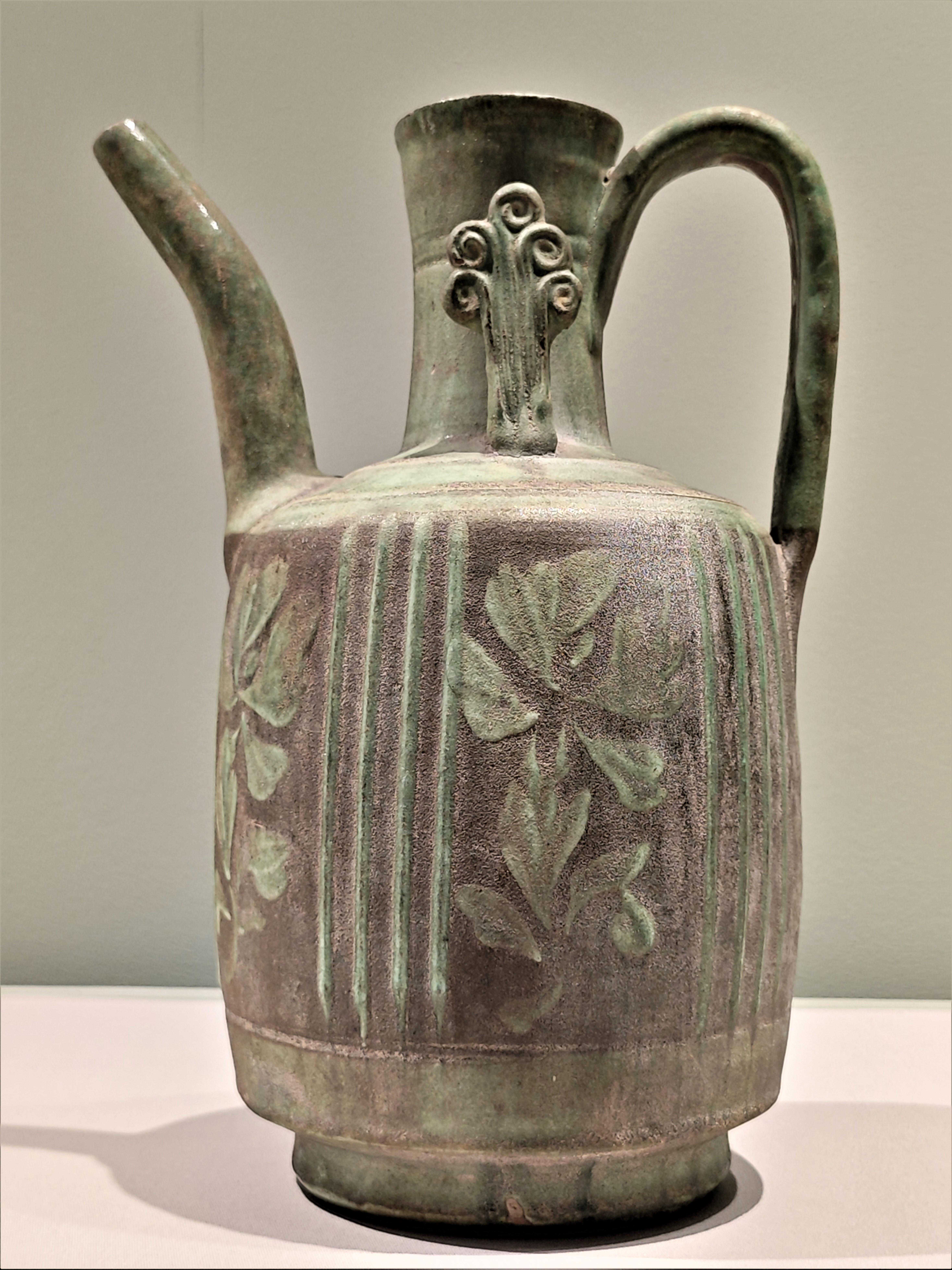 这件出土于江苏南京明代私立太监吴经墓的紫砂提梁壶,制作年代不晚于嘉靖12年(1533年),是目前所见年代可考器物中时代最早的紫砂壶。其弧形与同一时期画家王问所绘《煮茶图》上的提梁弧造型一致,互为对照。