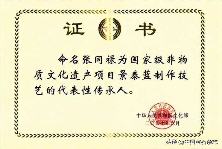 张同禄成为“国家级非物质文化遗产景泰蓝项目代表性传承人”