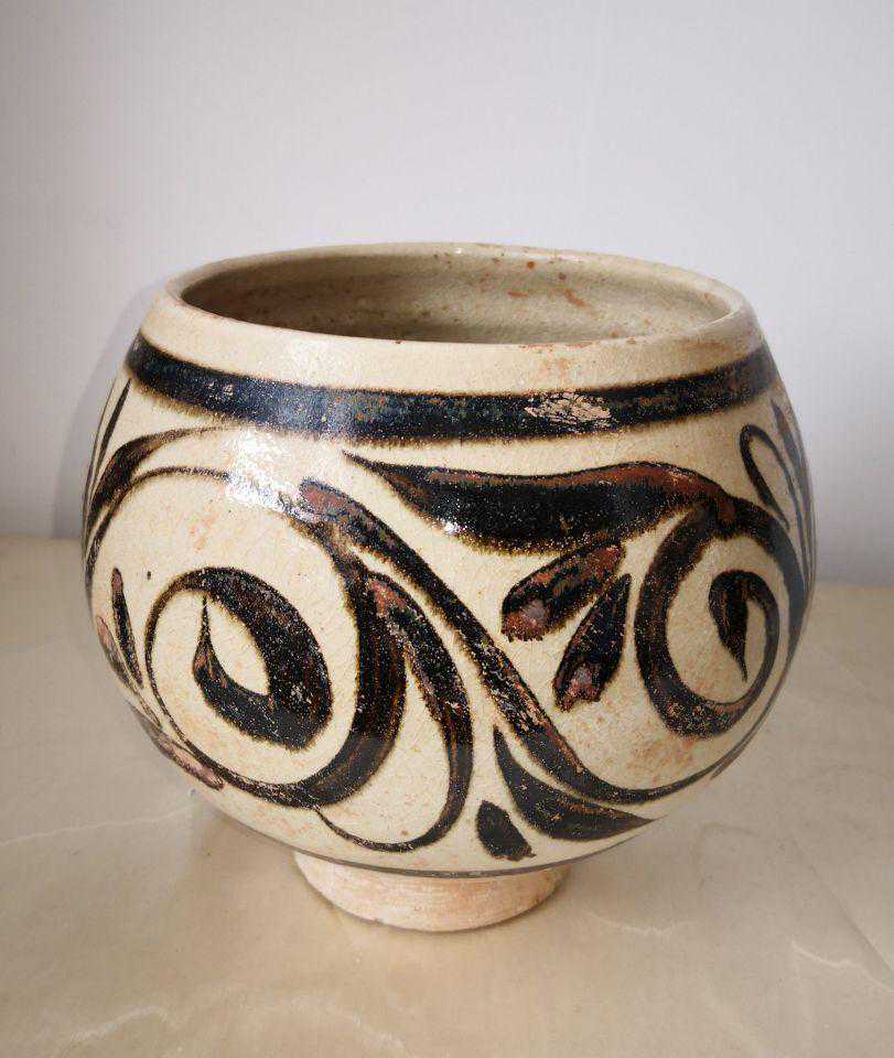 磁州窑白釉黑花罐高16厘米、口15厘米、底9厘米,济南孙先生收藏