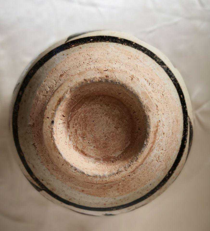 这件磁州窑白釉黑花罐通高16厘米、口径15厘米、底径9厘米,是济南孙先生收藏的。其敛口,鼓腹,圈足。腹部两侧釉下用黑彩连续绘有花草,彩料黑中明显带有褐色具有典型时代特征。外施白釉至下腹部不到底儿,时代感明显。釉色光洁,釉面匀净,灰白色胎,胎体厚重粗糙坚硬。底足斜刀切削,内高外低,时代感也明显。口远远大于底足,也具有时代感。那么这个小罐是什么年代的呢?对了!是元代的,叫元代磁州窑白釉黑花纹罐。