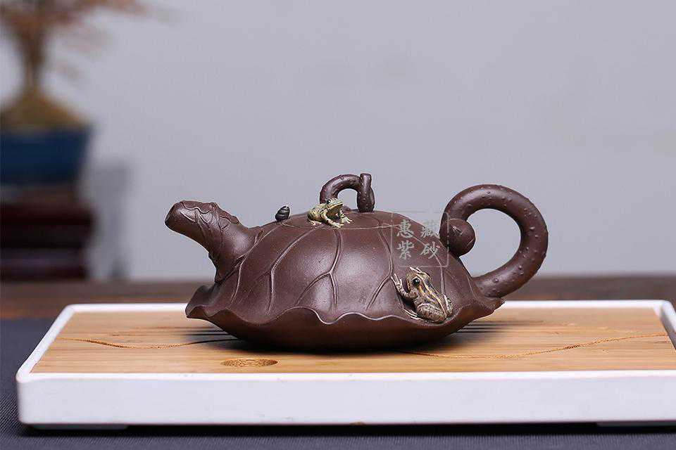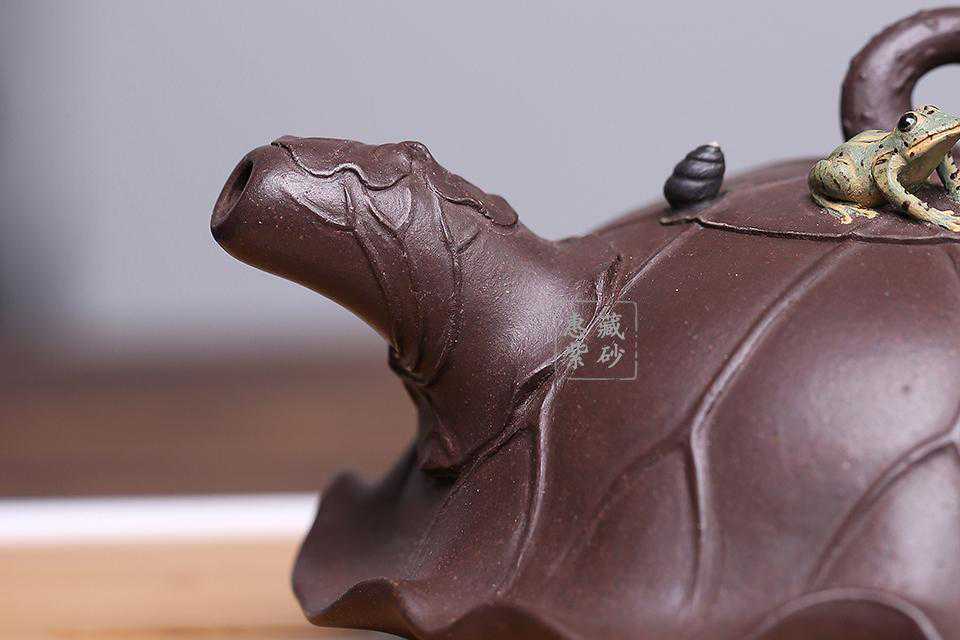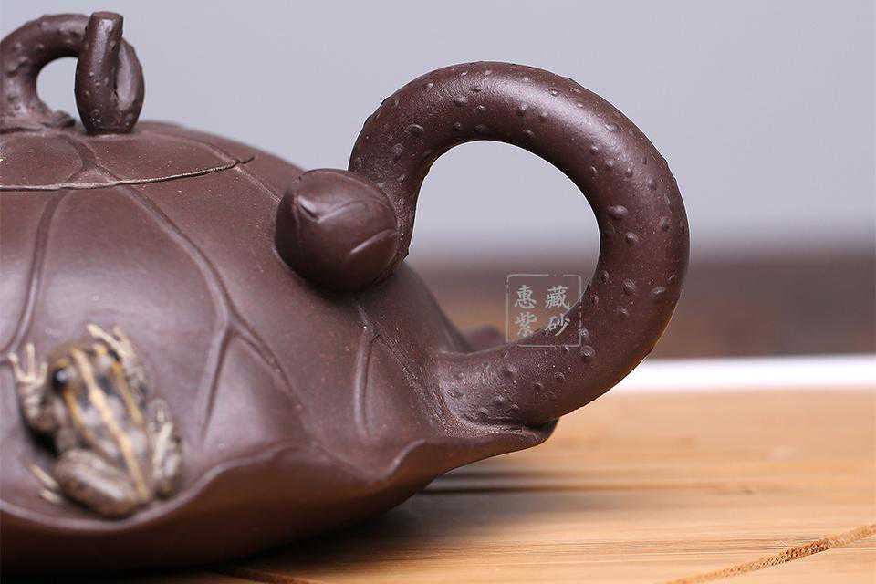 壶身的蟾蜍憨态可掬,生动形象,雕塑细腻,精致绝伦,与壶身相叠相称,极具意趣实为独树一帜的精工之作。