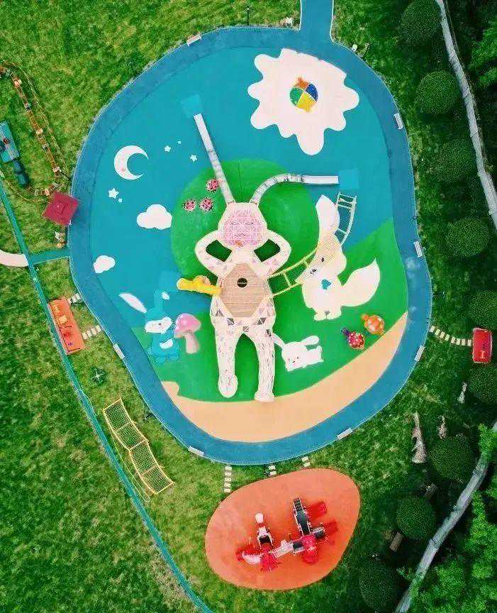 多项充满童趣的无动力游乐设施,昆虫滑梯、蹦床、秋千滑索、兔子乐园、探索乐园,还有无边际戏水恒温泳池