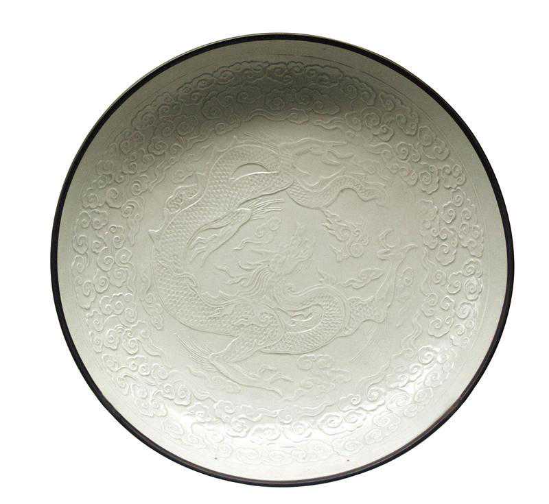 金代定窑白釉印花云龙纹盘