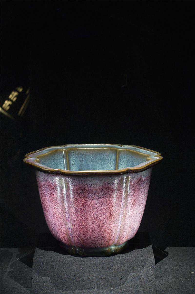 北宋钧窑玫瑰釉葵花式花盆