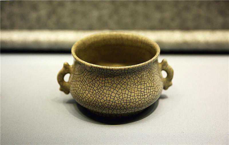 北宋官瓷胎质均为灰黑和紫褐色,釉层凝厚,青釉比较淡,以釉面开大裂纹片著称。传世品很少,形质与工艺与汝窑有共同处。