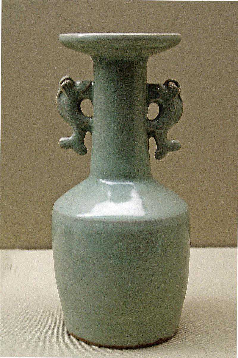 南宋青釉双鱼耳瓶