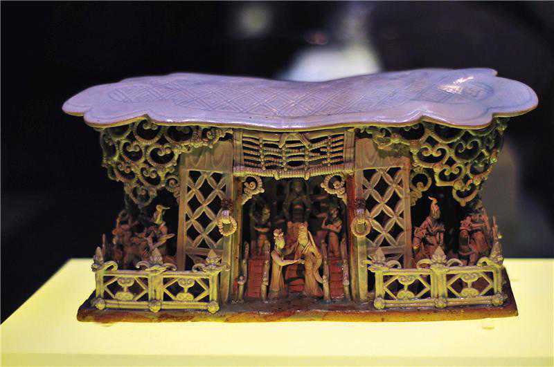 景德镇窑青白釉细锯舞台人物纹枕
