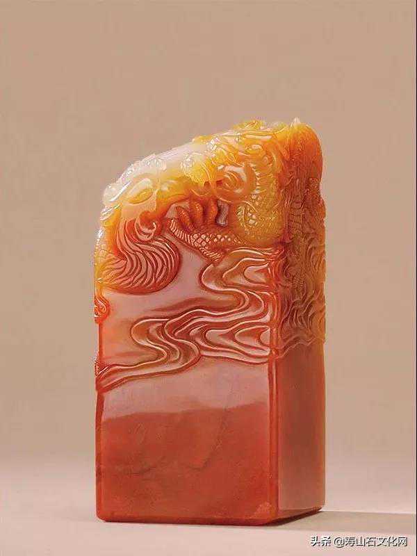 寿山石雕的云纹在借鉴传统图式的基础上呈现出多种多样的面貌。在古兽、神禽等钮式题材中,雕刻家在刻画古兽完整的身躯之外,羽翅、鳞尾或踏足部分通常“云纹”进行融合和衔接,神兽的部分躯体在云纹中时隐时现,构造出“腾云驾雾”的环境氛围,让人顿时领悟那才是祥瑞、神兽出没的世界。