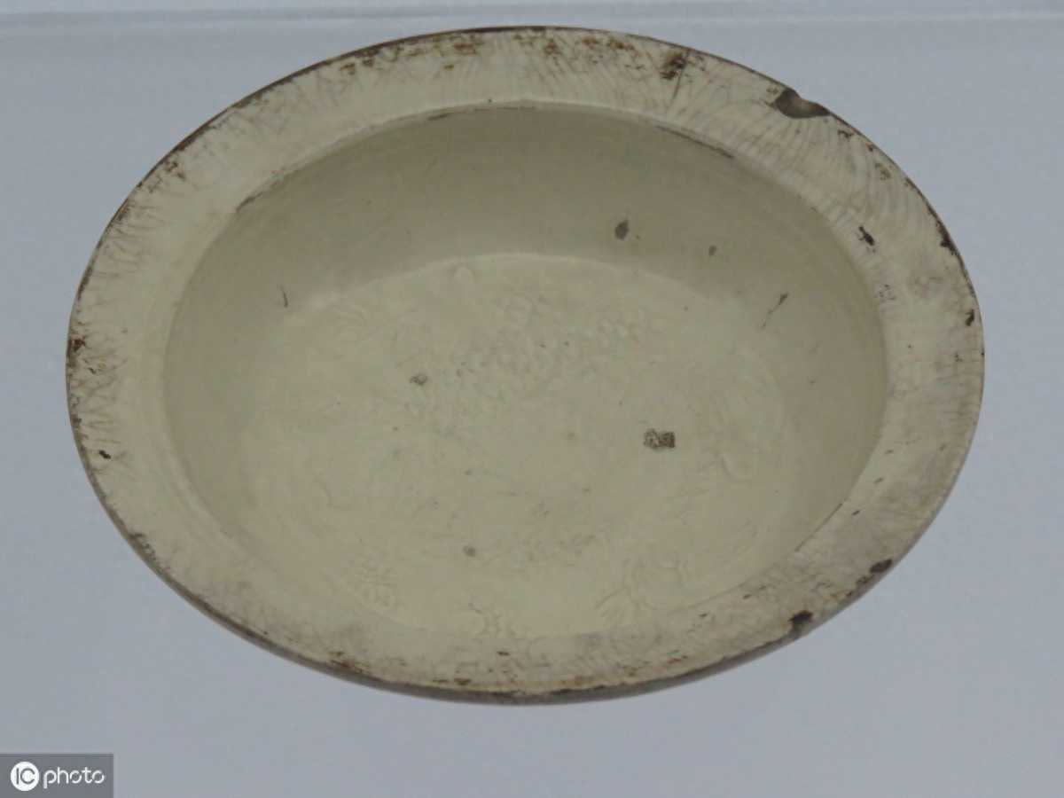 瓷器鉴定真知堂:从数量众多的类汝瓷窑址来看,金代北方瓷器生产并未萧条,反而蓬勃发展,原因是汝窑瓷器生产技术不再保密,众多窑口都生产类似瓷器。图为山西博物馆收藏的金代白瓷印花双鱼洗。
