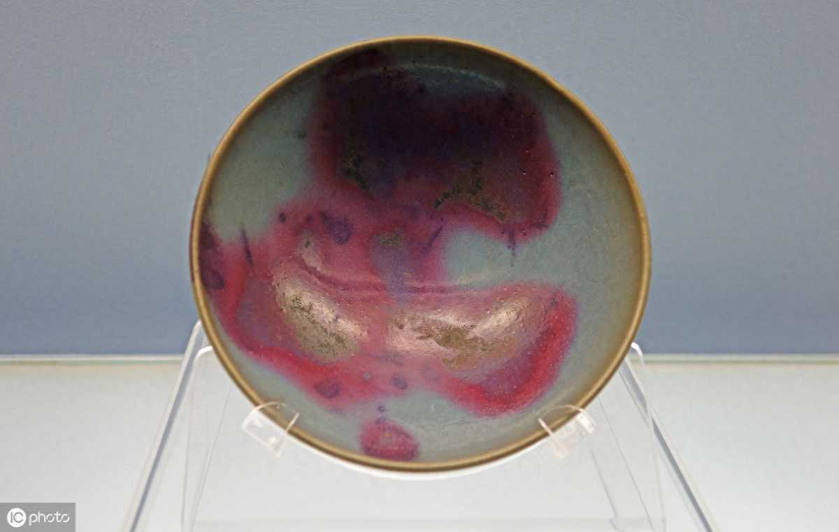 瓷器鉴定真知堂:金代钧瓷相比北宋有很大进步,这种胎质粗糙,器型厚重的瓷器,比较符合北方游牧民族的心理,真知堂考证,原定为北宋均窑的那批瓷器,极有可能是金代烧制的宫廷陈设瓷。图为钧瓷天蓝釉红斑碗,金代,上海博物馆古代陶瓷馆文物。
