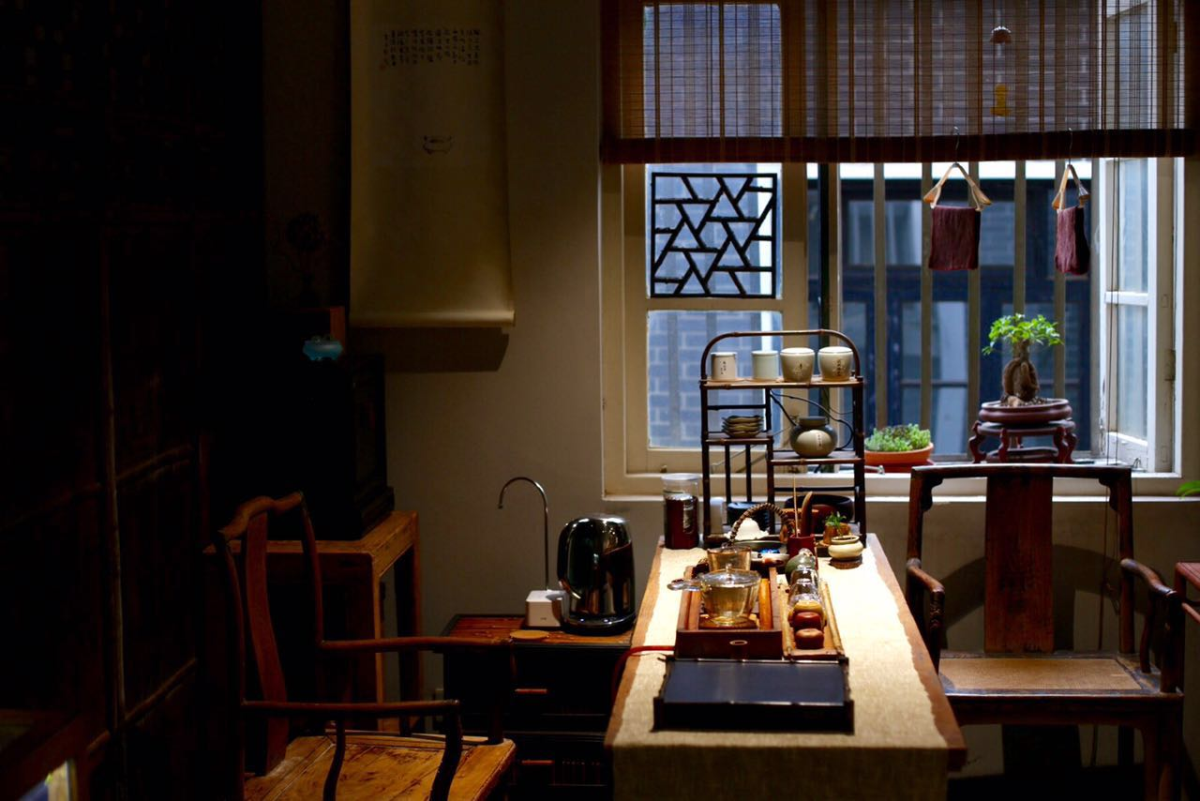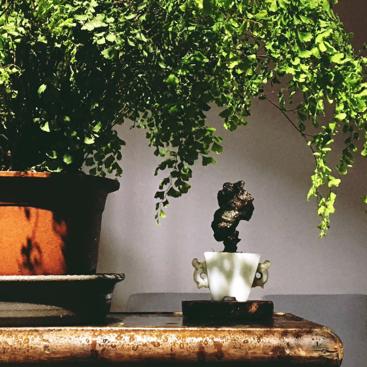 牧之的工作室藏身于上海玻璃博物馆侧畔,取名“逸舍”。花圃掩映之间,半扇轻盈竹帘,细细沉香缭绕,令人感到通透、清凉,可谓大隐隐于市。