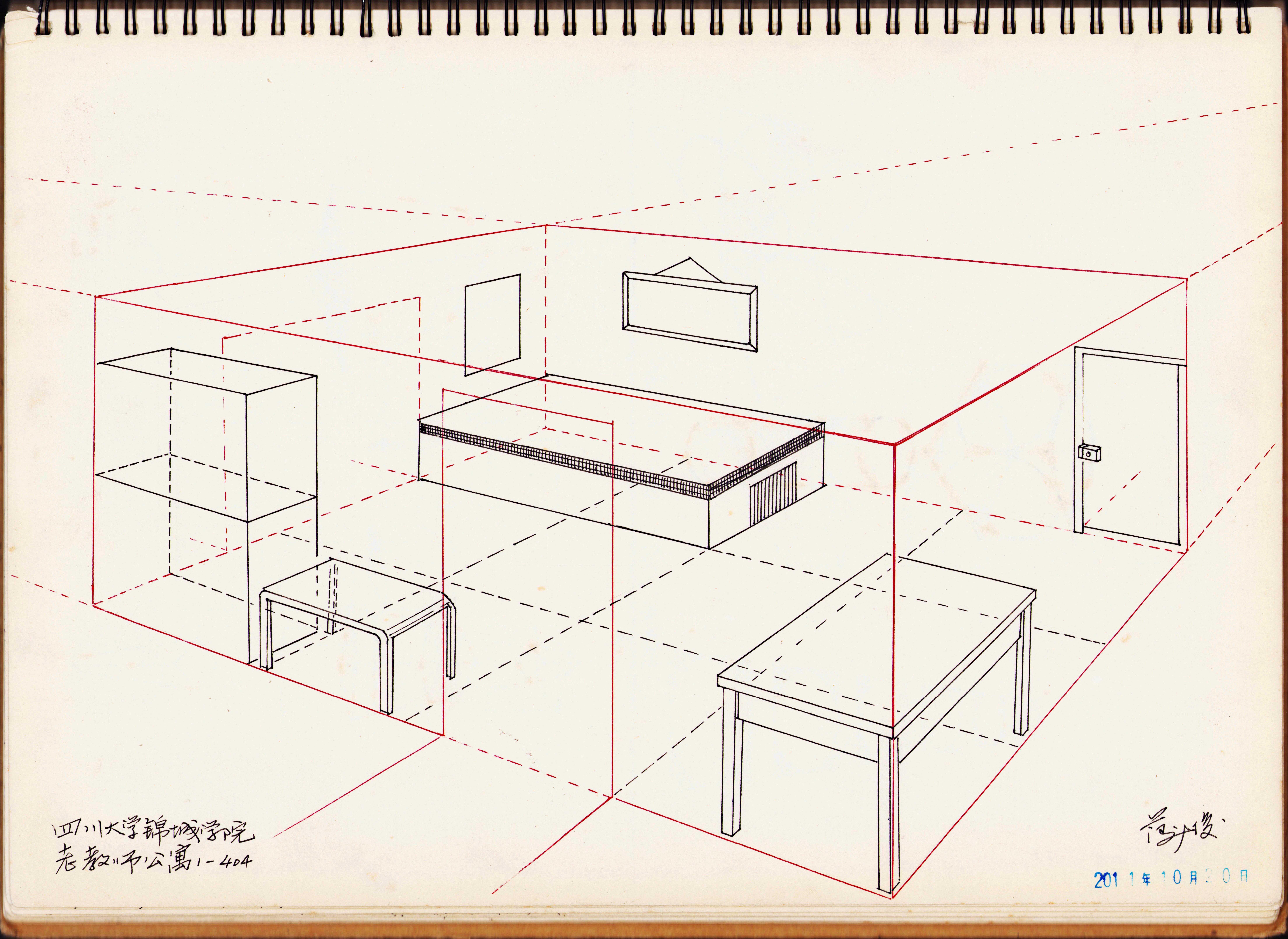 02.范美俊教室透视(素描)钢笔纸本,26×37cm,2011年